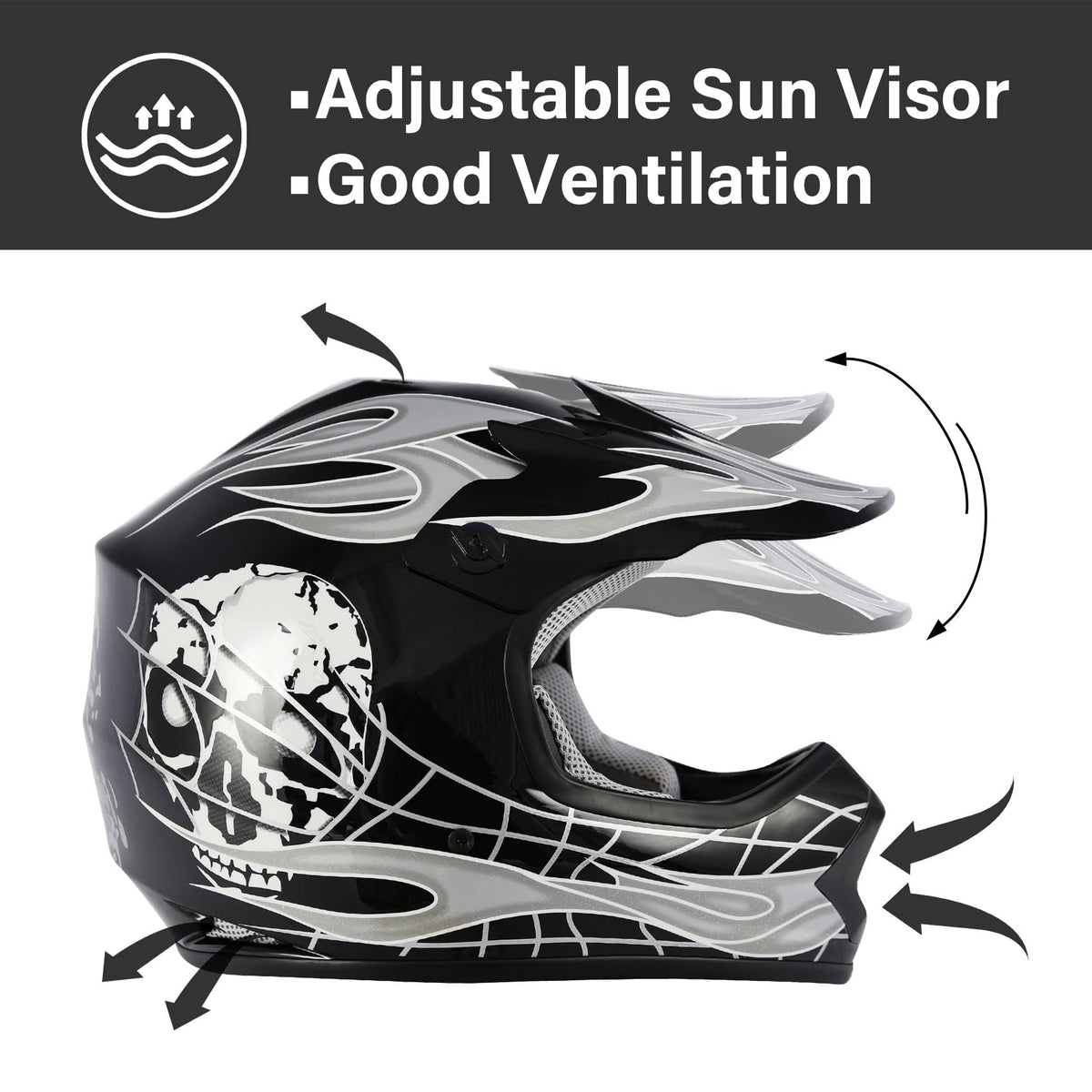Slmoto Dot Youth Kids Helmet Motocross Offroad Street Helmet Motorcycle Helmet Dirt Bike Motocross Atv Black Skull Design Helmetgogglesgloves Large, Small