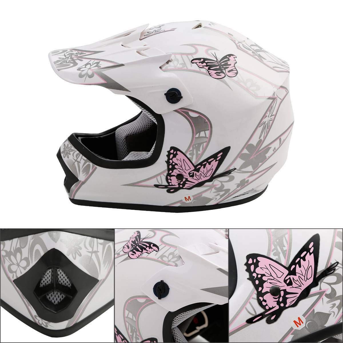 Slmoto Dot Youth Kids Helmet Motocross Offroad Street Helmet Motorcycle Helmet Dirt Bike Motocross Atv Pink Butterfly Design Helmet Goggles Gloves Large