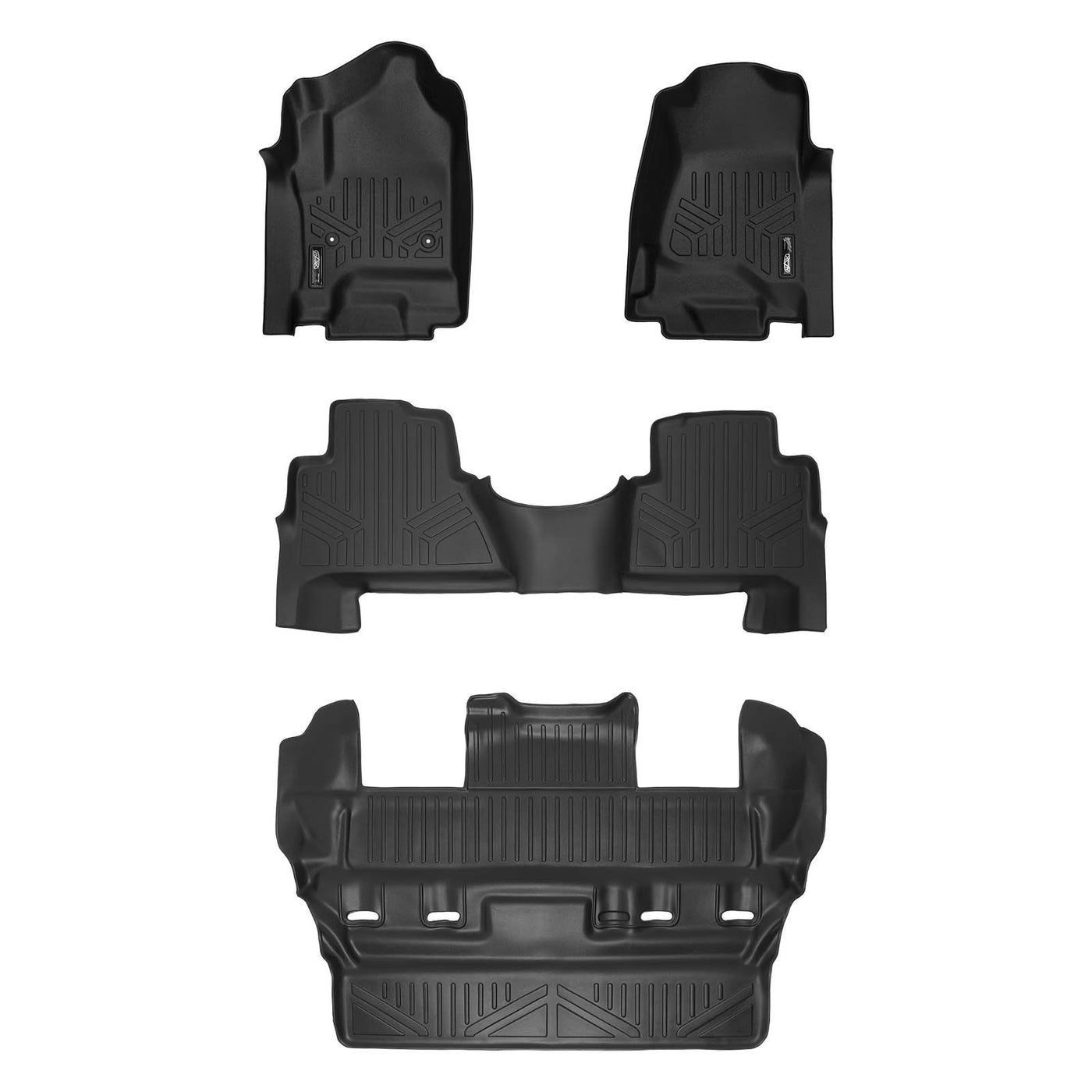 SMARTLINER All Weather Custom Fit 3 Row Black Floor Mat Liner Set Compatible with 2015-2020 Cadillac Escalade (Does not fit ESV