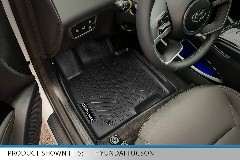 Q: What vehicles are compatible with the SMARTLINER All Weather Floor Mats?A: The SMARTLINER All Weather Floor Mats are designed to fit various vehicles, including the 2022-2023 Hyundai Tucson. They may also be compatible with other models, so it's recommended to check the dimensions before installation.