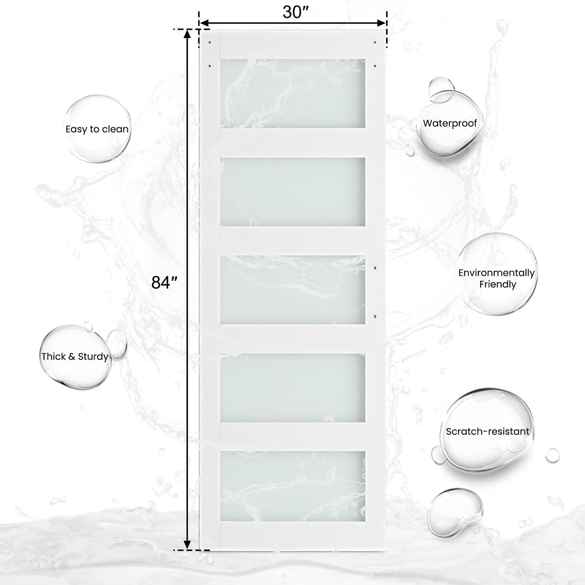 Smartstandard 30 X 84 In Glass Barn Door With 5Ft Sliding Hardware Kit & Handle, Pre-Drilled Ready To Assemble, Waterproof Pvc Coating, White, 5-Panel Glass