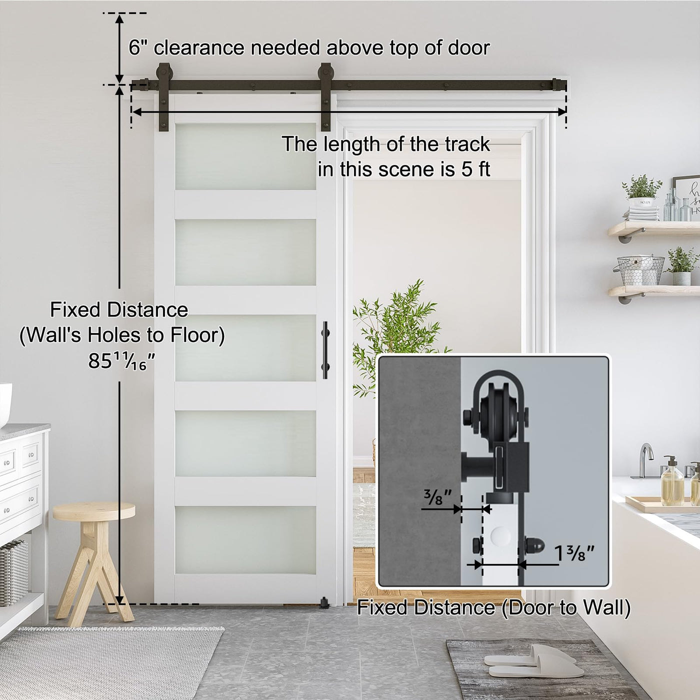 Q: Is the barn door easy to install?A: Yes, the barn door comes with pre-drilled holes for quick installation. It also includes clear step-by-step instructions, making it a great DIY project for homeowners.