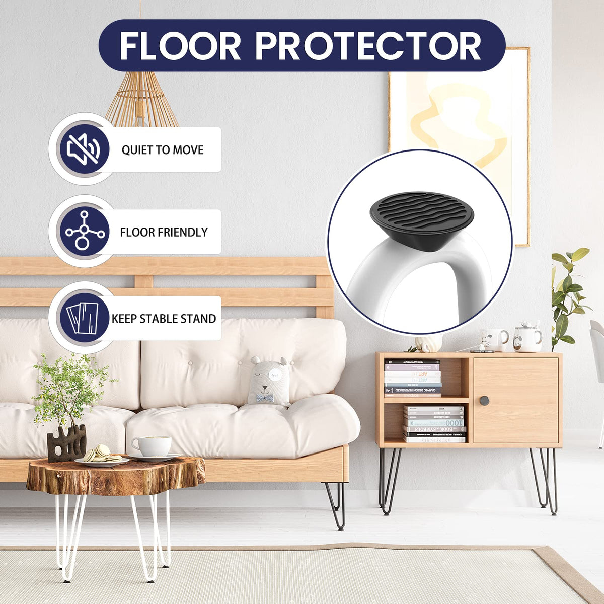 Q: Do the rubber floor protectors really help with stability?A: Yes, the additional rubber floor protectors provided with the SMARTSTANDARD hairpin legs not only protect your floors from scratches but also serve as stabilizers, reducing wobbling on uneven surfaces.