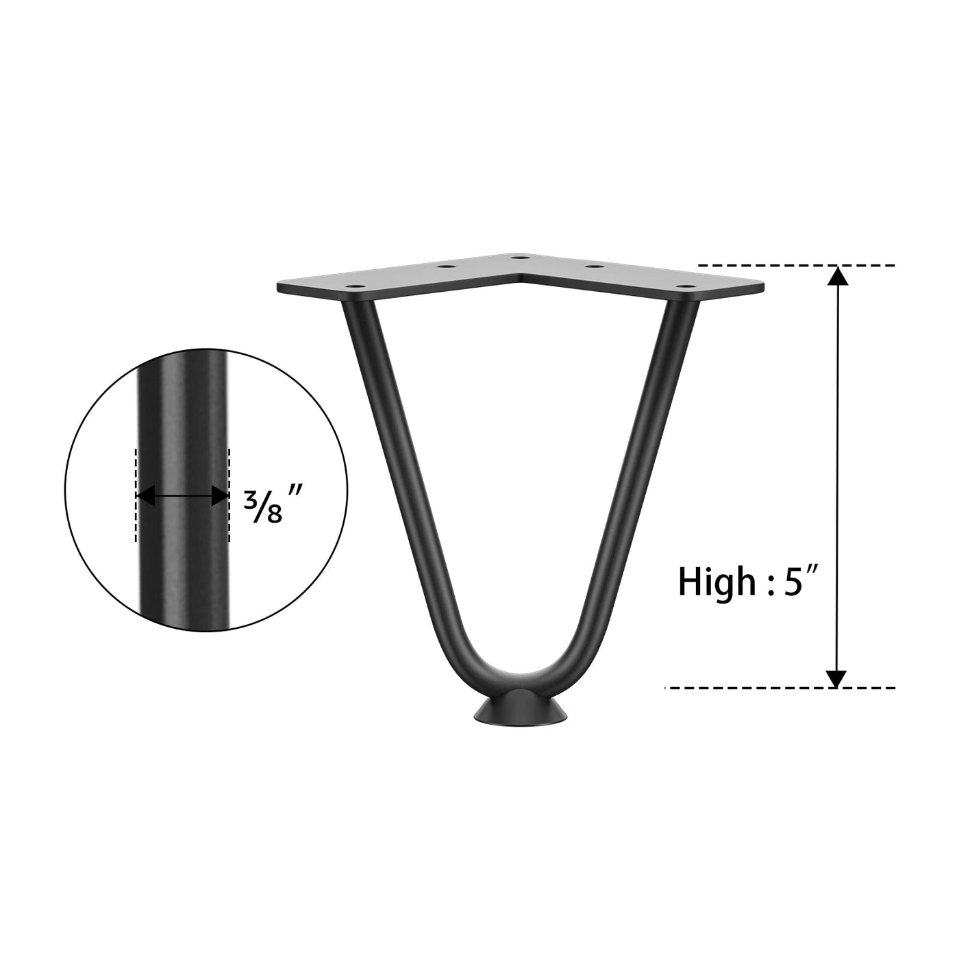Q: Can I use these legs for DIY projects?A: Absolutely! These 5-inch hairpin legs are perfect for DIY projects, allowing you to create custom furniture pieces with a modern industrial look.