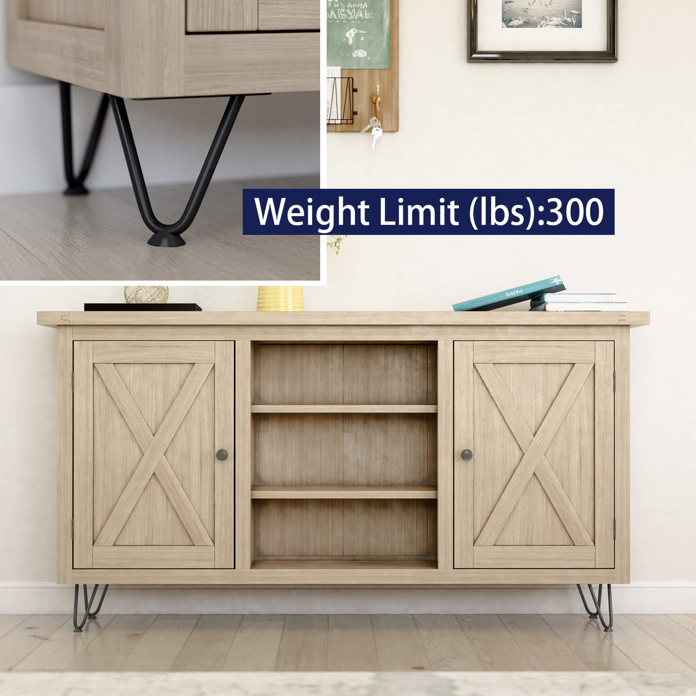 Q: What is the weight capacity of the SMARTSTANDARD 5 Inch Hairpin Legs?A: The SMARTSTANDARD 5 Inch Hairpin Legs are designed to support up to 300 lbs, making them suitable for various furniture projects such as sofas, TV stands, and dressers.
