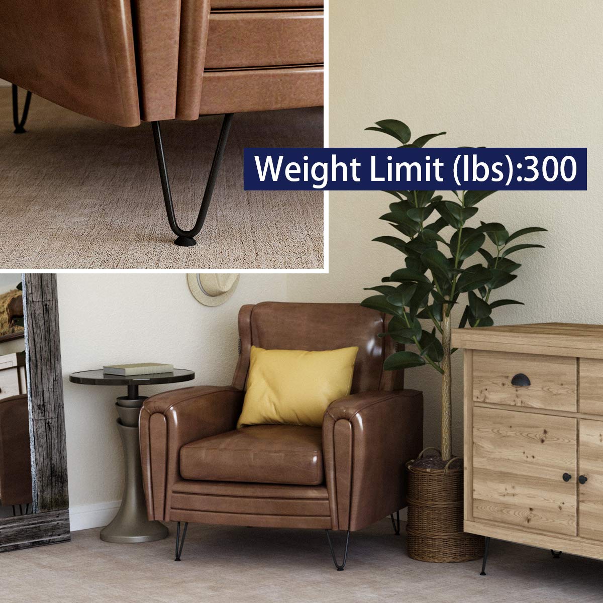 Q: How much weight can these hairpin legs support?A: These heavy-duty hairpin legs can support up to 300 lbs, making them suitable for a wide range of furniture applications.