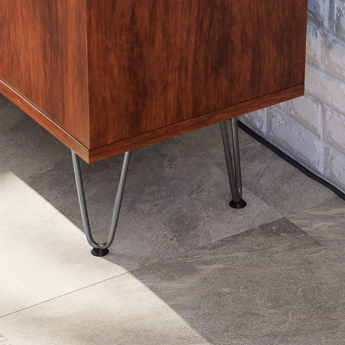 Q: What materials are the SMARTSTANDARD Hairpin Furniture Legs made of?A: The SMARTSTANDARD Hairpin Furniture Legs are made of heavy-duty solid steel, specifically 3/8'' cold rolled sturdy steel, ensuring durability and stability.