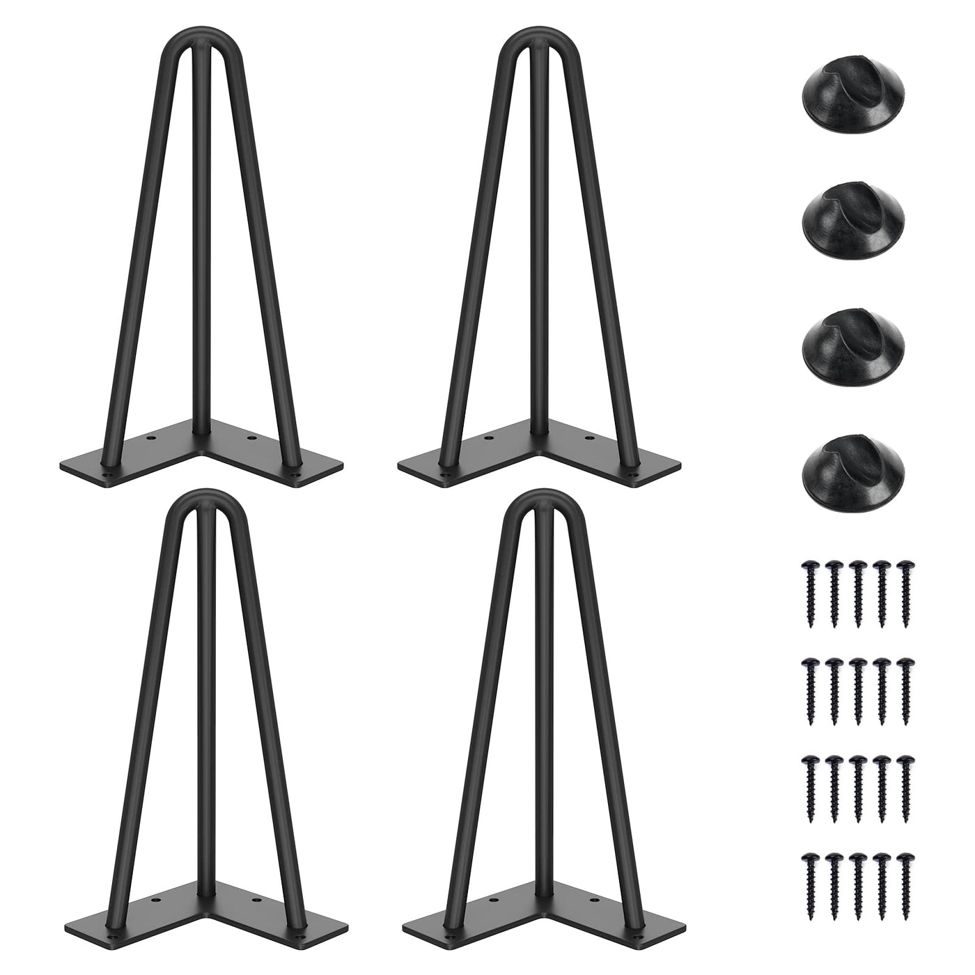 Smartstandard Hairpin Table Legs 10 Inch, 1/2'' 3 Steel Rods, 900Lbs Load Capacity, Mid-Century Style For Coffee Table, Side Table, Night Stand (Black, 4Pcs)