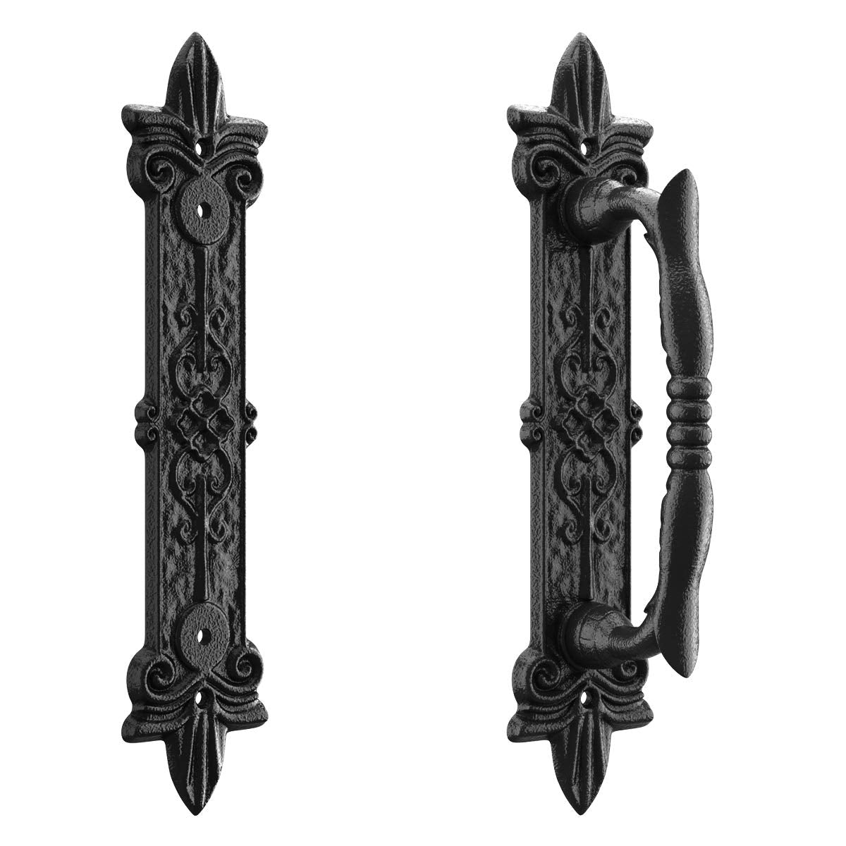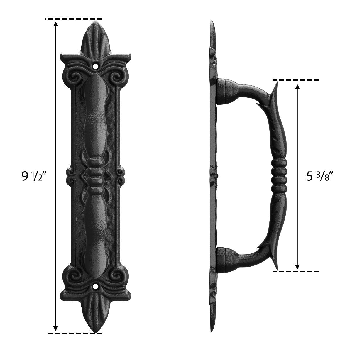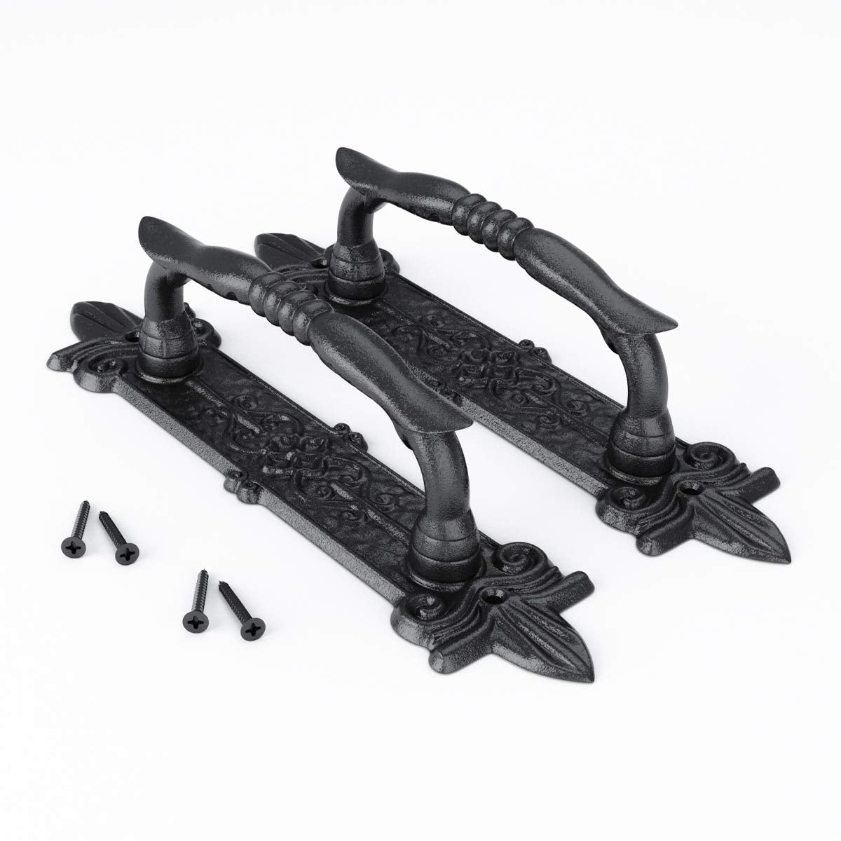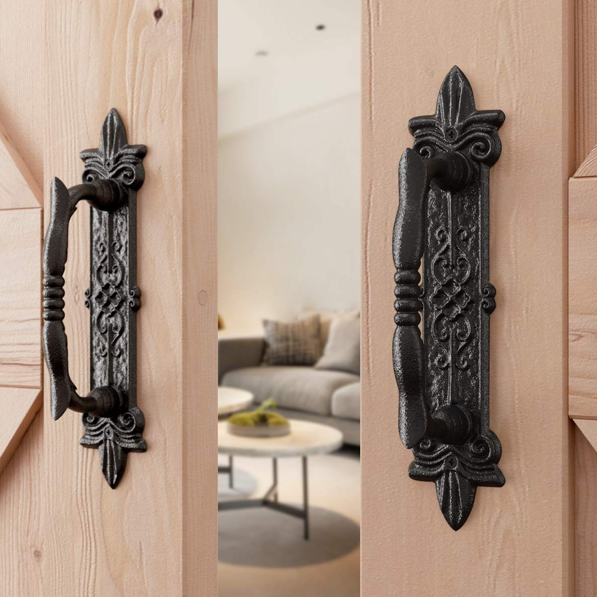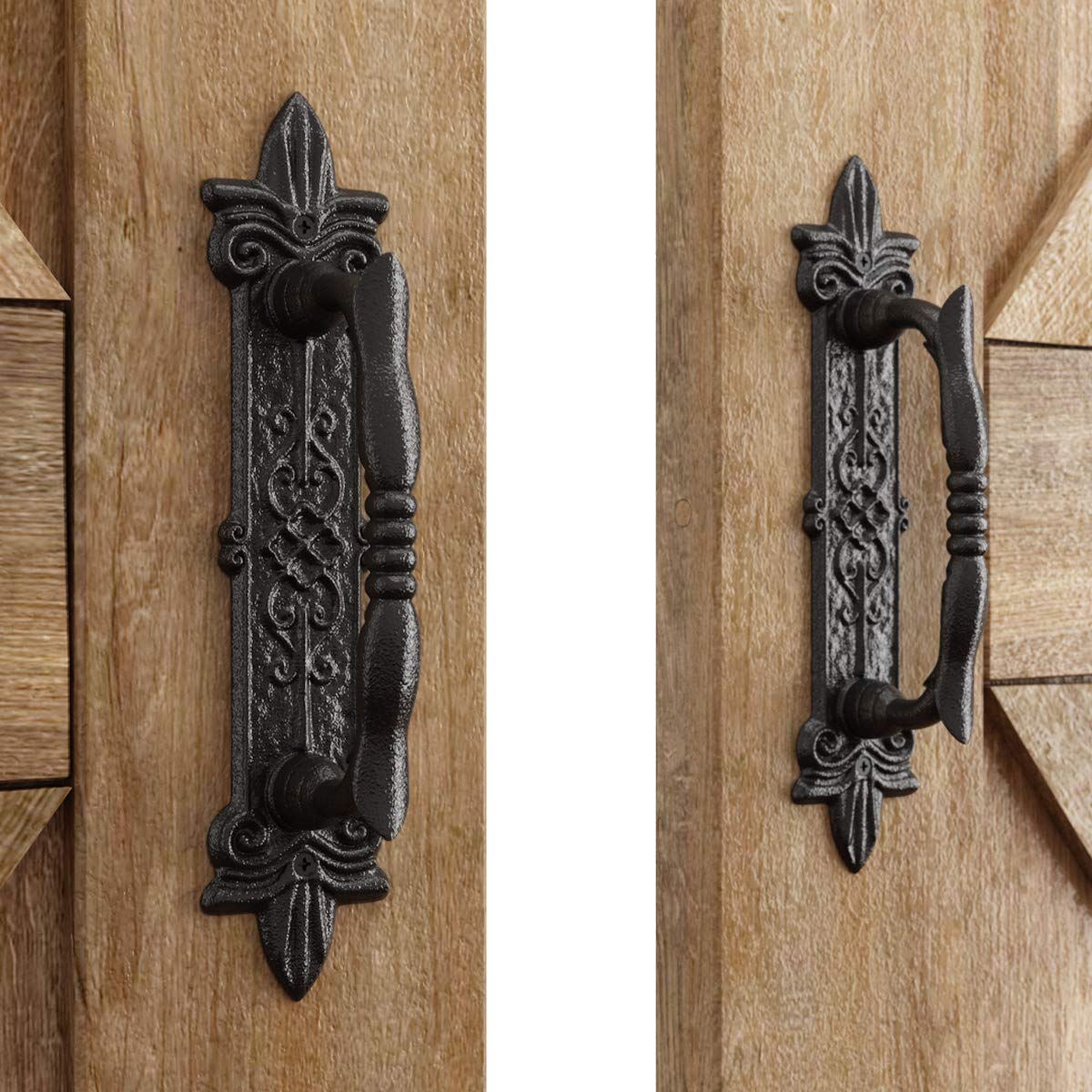 Smartstandard Heavy Duty 9' Antique Barn Door Handle Set Of 2, Large Rustic Carved Door Pull, For Gates Garages Sheds, Black Powder Coated Finish