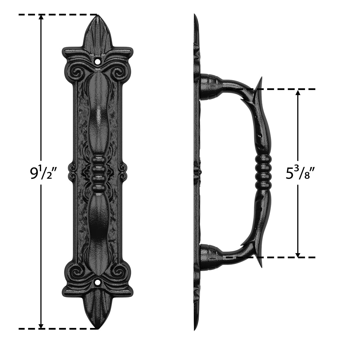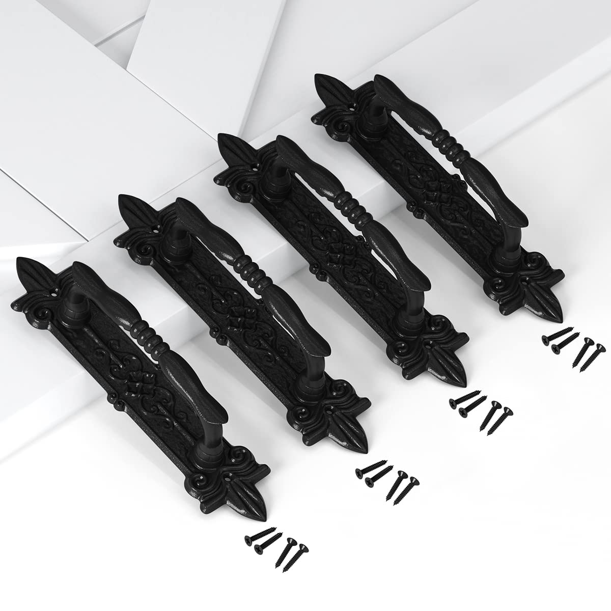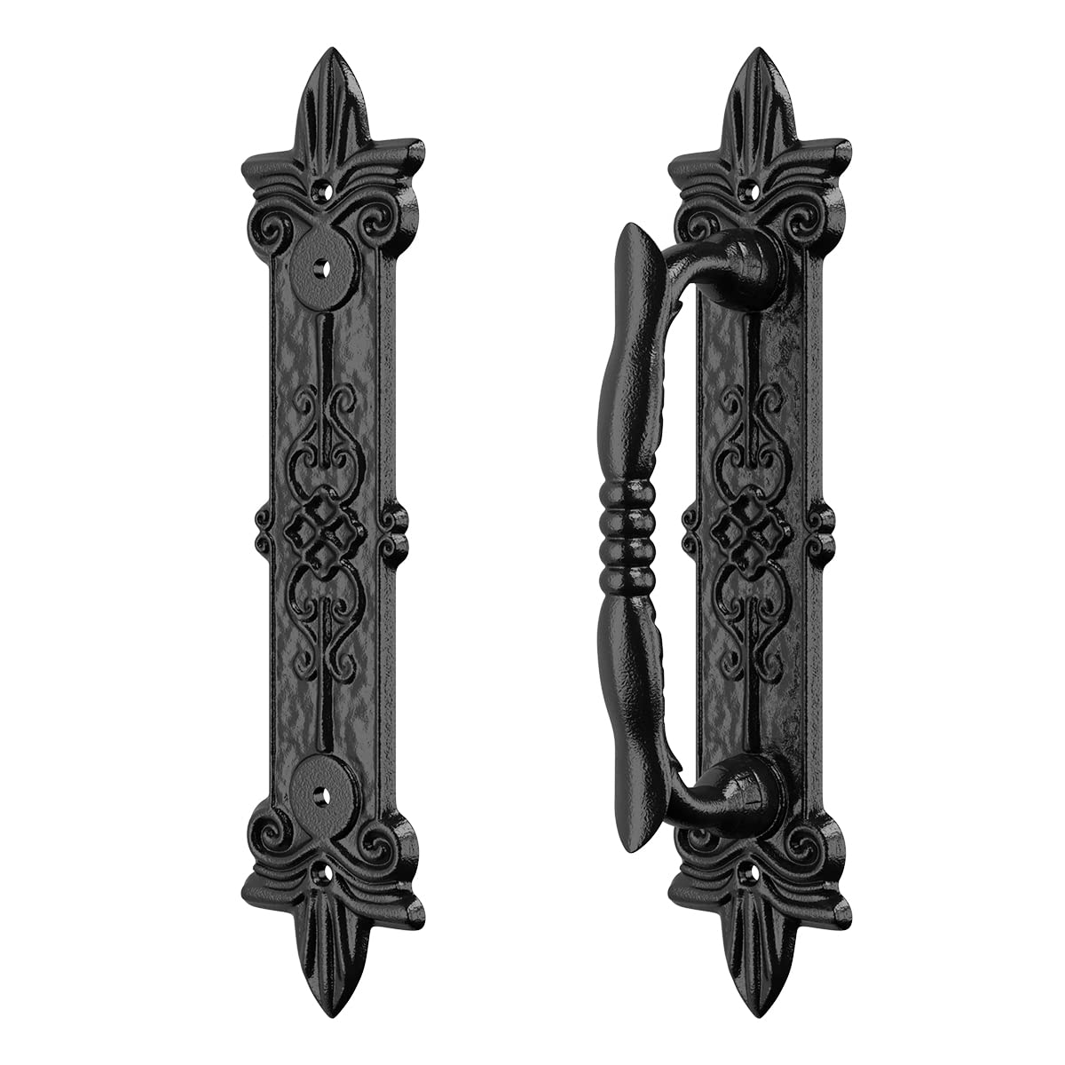 Smartstandard Heavy Duty 9' Antique Barn Door Handle Set Of 4, Large Rustic Carved Door Pull, For Gates Garages Sheds, Black Powder Coated Finish