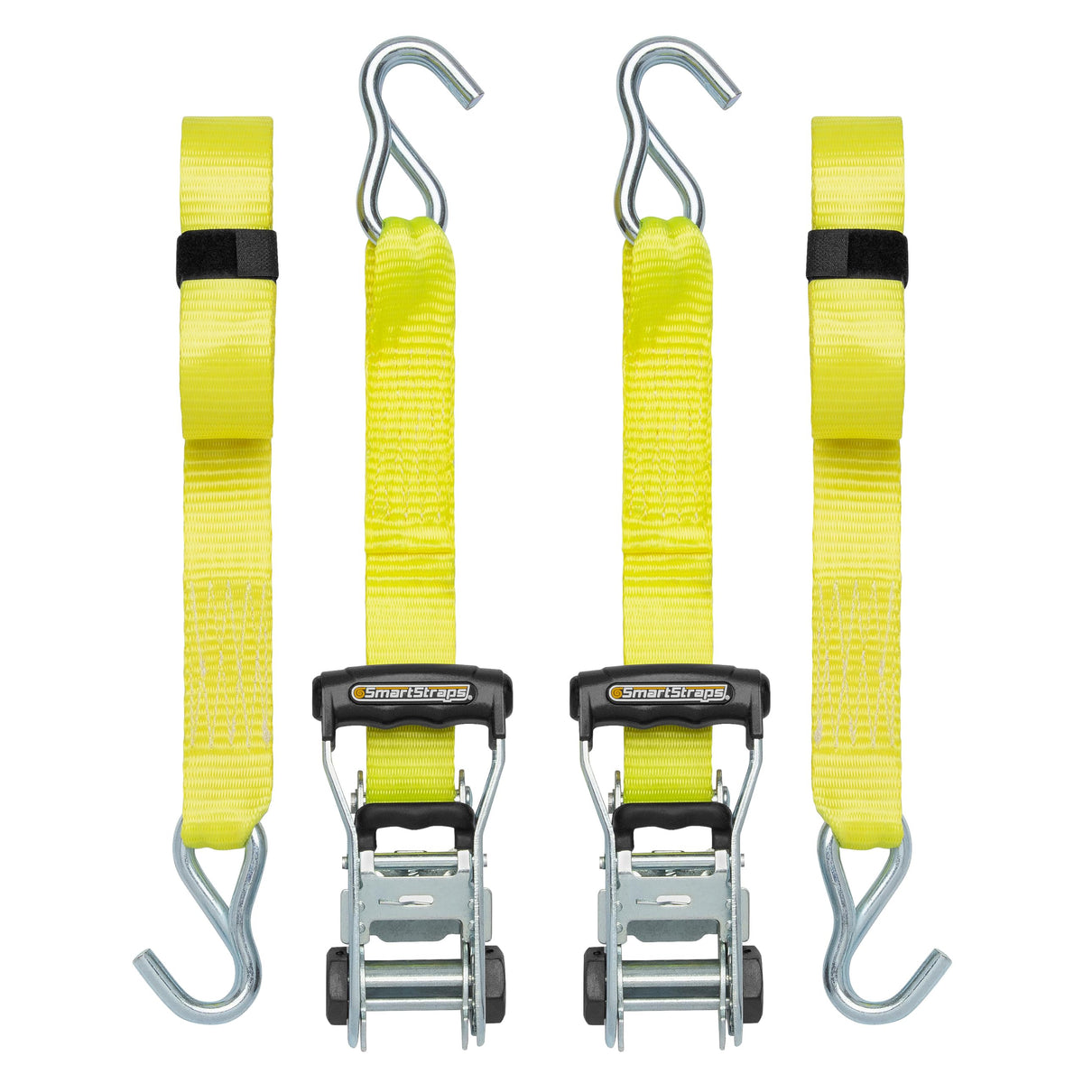 SmartStraps 14’ Ratchet Strap Set 2 Pack is ideal for securing heavy-duty cargo such as large equipment, vehicles, or tractors to trailers. With a safe work load of 1,667lbs and a break strength of 5,000lbs, you don’t need to worry on the road. Heavy-duty ratchet straps feature an aluminum handle that is flared out for easier handling and includes a padded grip to give you added strength and leverage as you secure your load. Protective hex caps keep the ratchet mechanism clean, sewn-in soft tie loops prevent scratches, and our SmartWeb Technology is more abrasion resistant than standard webbing. Extra-long webbing is provided on the attachment end for hard-to-reach anchor points. SmartStraps Ratchet Straps come packaged in an innovative, reusable EcoCase for organized storage. Secure your passion with SmartStraps, America’s #1 Tie Down Brand. Family-owned, SmartStraps are designed and engineered in the US. We take innovation to the heart of the product to create products with functional common-sense benefits that truly satisfy our customers’ needs. That’s why SmartStraps has more patented and proprietary products than any other company in the market. We believe in continuous improvement. We guarantee our products are the best. We intend to keep it that way.