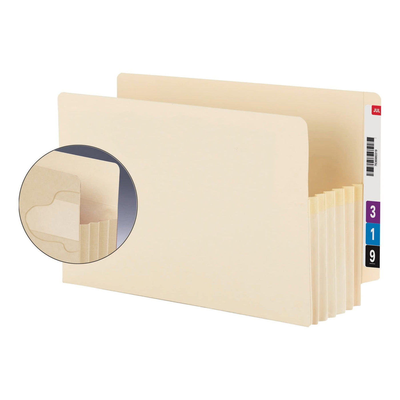 Virtually indestructible file pocket won't rip out, even when pulled from the shelf by the gusset. Gusset is fully lined with tear-resistant Tyvek, has special rollover reinforcement at the top and extends into the front and back panels twice as far as standard file pockets. Hidden reinforcement strip at the point of greatest stress. Extra-wide pockets accommodate standard top tab file folders. Labels sold separately. This product was made using wood sourced from a certified managed forest. Expandable Document Pocket Wallet Type: Open Pocket; Size: Letter; Width: 12 3/4''; Height: 9 1/2''.