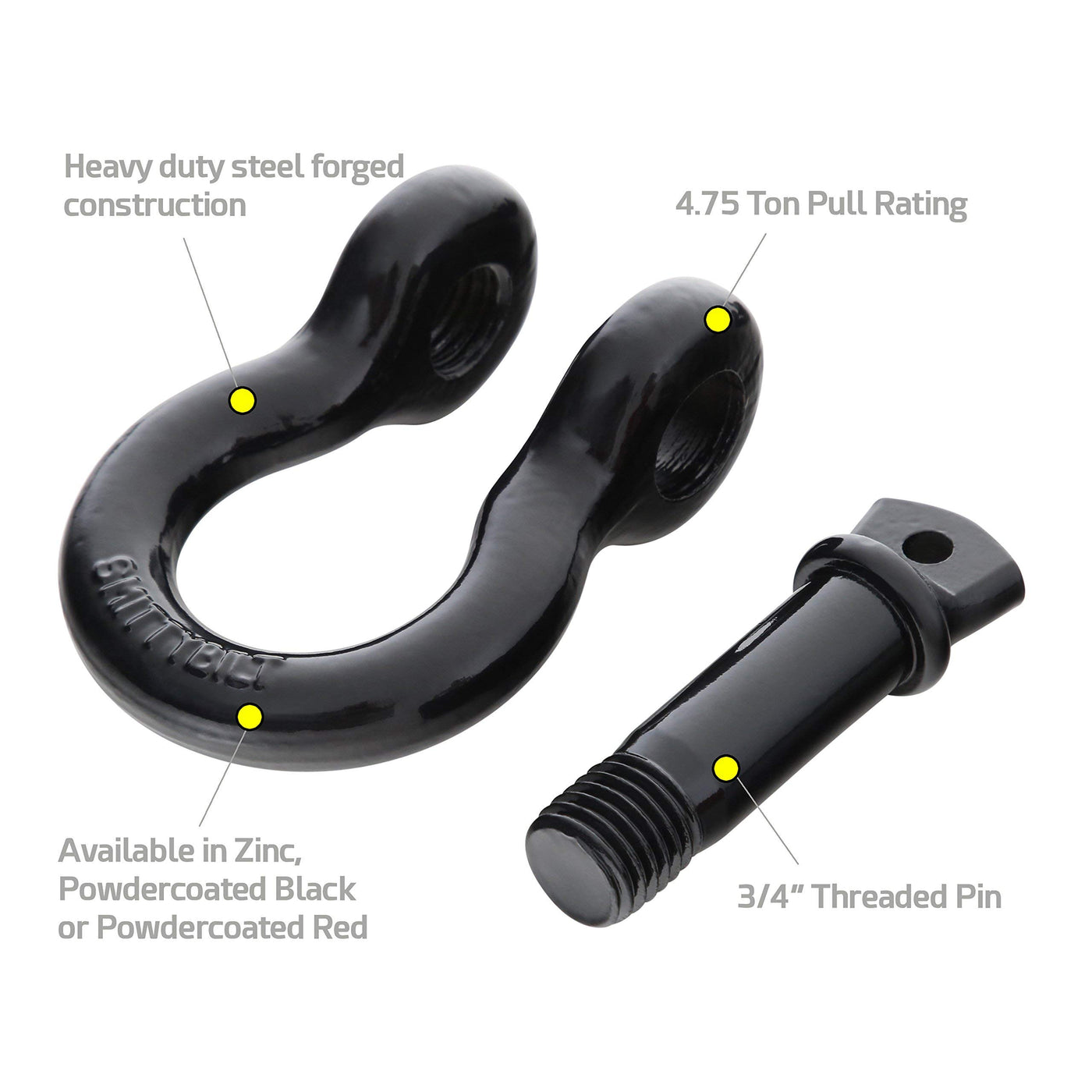 Smittybilt 13047B D-Ring Shackle 3/4'' Threaded Pin 4.75 Ton Rating Black