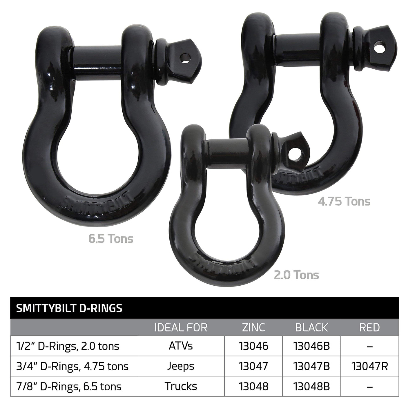 Smittybilt 3/4'' Black D-Ring Is Designed For High Quality Towing. It Is Made From Strong Material And Is Plated With Zinc Coating To Prevent Corrosion. This Ring Is Highly Durable And Ensures Easy Installation.