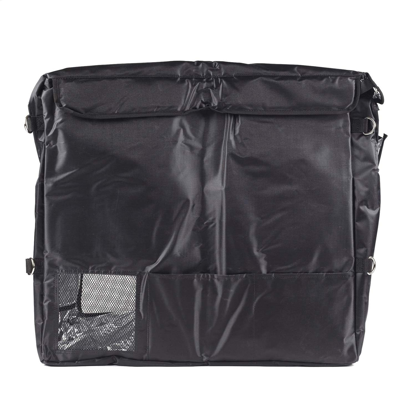 Q: What features does the Transit Bag offer for convenience?A: The Transit Bag includes integrated openings for rubber feet, drain plug, and fridge power cables, along with rear vent panels for necessary airflow to the motor and condenser. It also features a handy side pocket for storing the fridge manual and power lead.