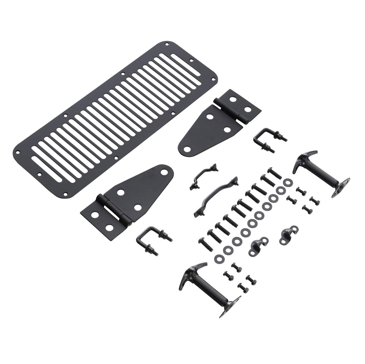 Smittybilt Black Complete Hood Kit consists of hood hinges, footman and two pieces of rubber bumper covers. It is made from strong material that lasts long. This hood kit is weather resistant and ensures easy installation.