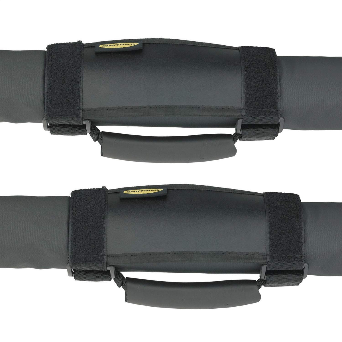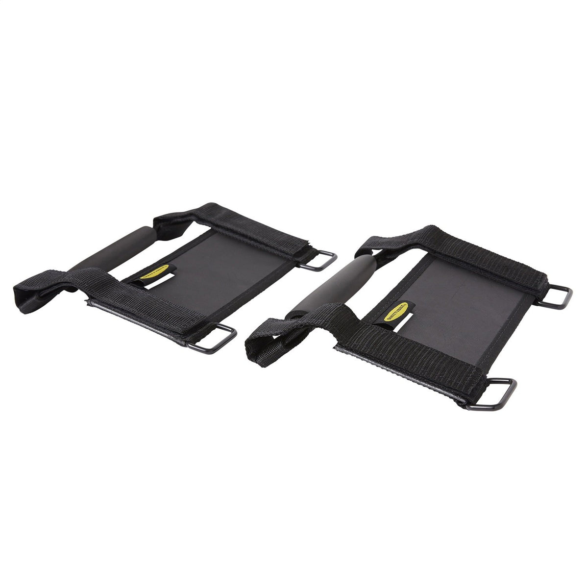 Q: What material is used in the SmittyBilt grab handles?A: The grab handles are made from a weather-resistant outdoor-grade fabric, providing durability and resistance to the elements, making them ideal for outdoor use.