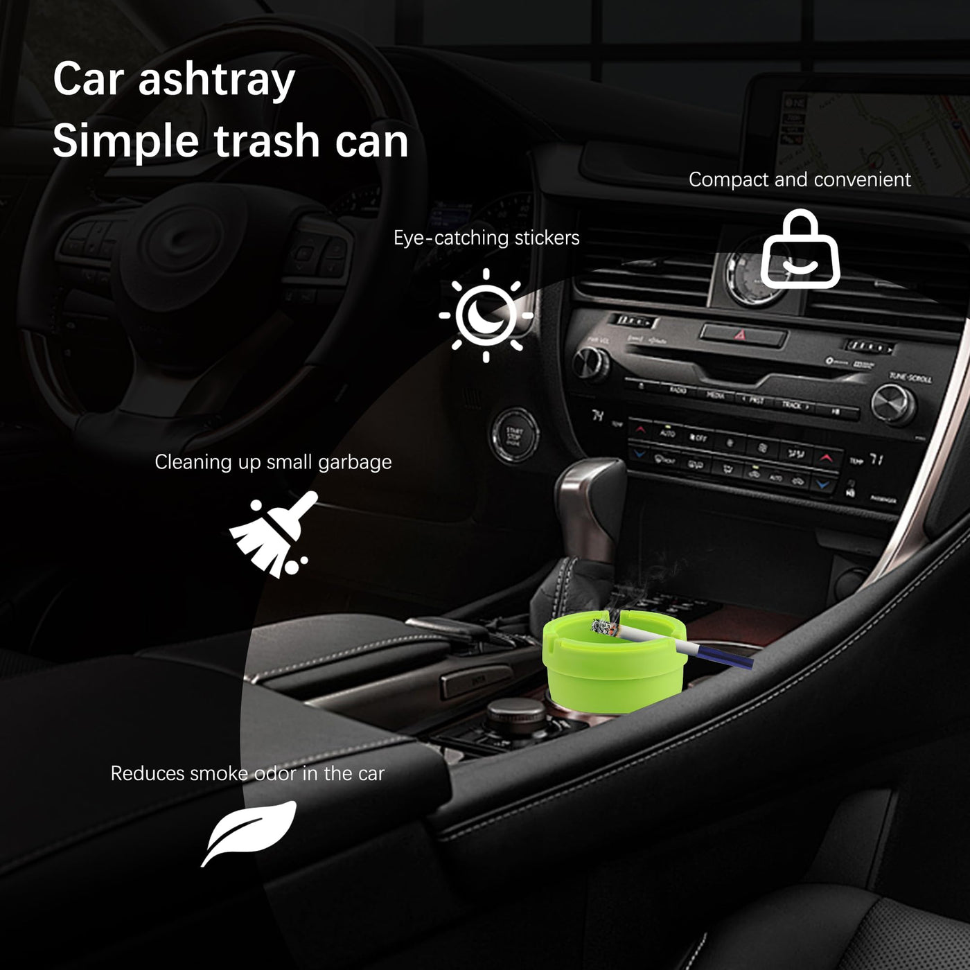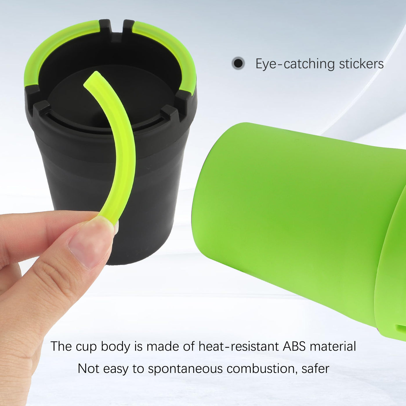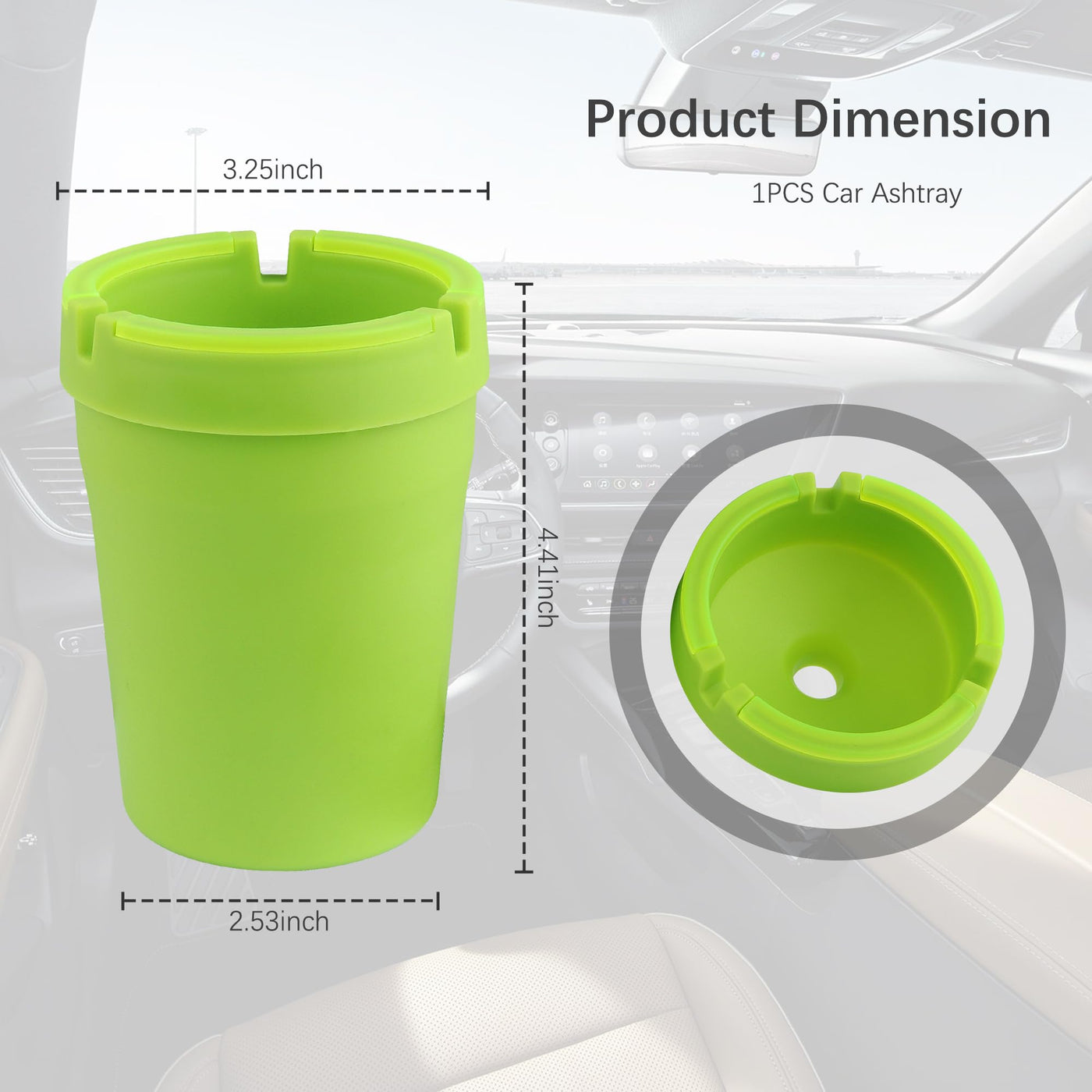 MULTIFUNCTIONAL ASHTRAY Portable & Smokeless Ashtray, Your Good Partner For Car Life! SMOKELESS ASHTRAY PROPERTIES LIST Material: ABS Weight: 2.14 oz Height: 4.41 inch Top Diameter: 3.25 inch Bottom Diameter: 2.53 inch Color: Black / Red / Green / Purple / Blue Packaging: 1 x Smokeless Ashtray SMOKELESS ASHTRAY FEATURES Made of heat-resistant ABS plastic material, ABS material is not easy to be deformed by the heat of unextinguished cigarette, it can last for many years of use, and at the same time, it is not easy to spontaneous combustion, which is safer A variety of colors to choose from, more able to express your personality The funnel shape design of the ashtray lid keeps that the ash will not fly around in the air, while more effectively isolating bad smell in the car SMOKELESS ASHTRAY FUNCTIONS While used for storing cigarette butts and ashes, it can be used for storing trash in the car, such as chewing gum, waste paper and so on The three grooves on the ashtray allow drivers to jam their cigarettes into the grooves while driving, freeing up their hands and making it easy to drive on the road It can be used in other scenarios besides the car, such as home, office, camping out in the countryside and so on