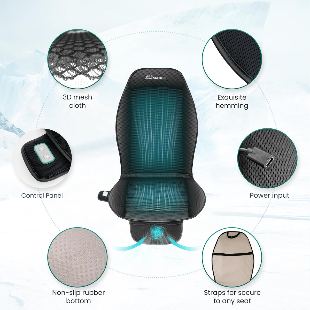 Snailax Cooling Car Seat Cushion, Cooling Seat Cover for Car, Ventilated Seat Pad with 3 Adjustable Speeds, 3D Breathable Mesh,