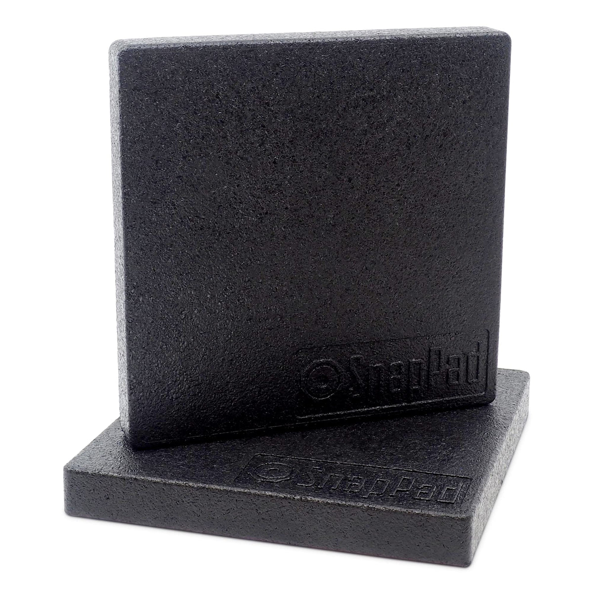 Q: What materials are used in SnapPad The Cap RV leveling blocks?A: SnapPad The Cap leveling blocks are made from durable recycled rubber, which is engineered to resist UV exposure, water, heat, oil, tar, and mud, ensuring longevity and protection for your stackers.