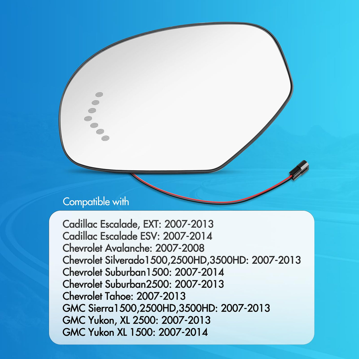SNEMEEY Driver Side Heated Mirror Replacement for 2007-2013 Chevrolet Silverado, Tahoe, Chevy Suburban, Avalanche, GMC Yukon, Ca