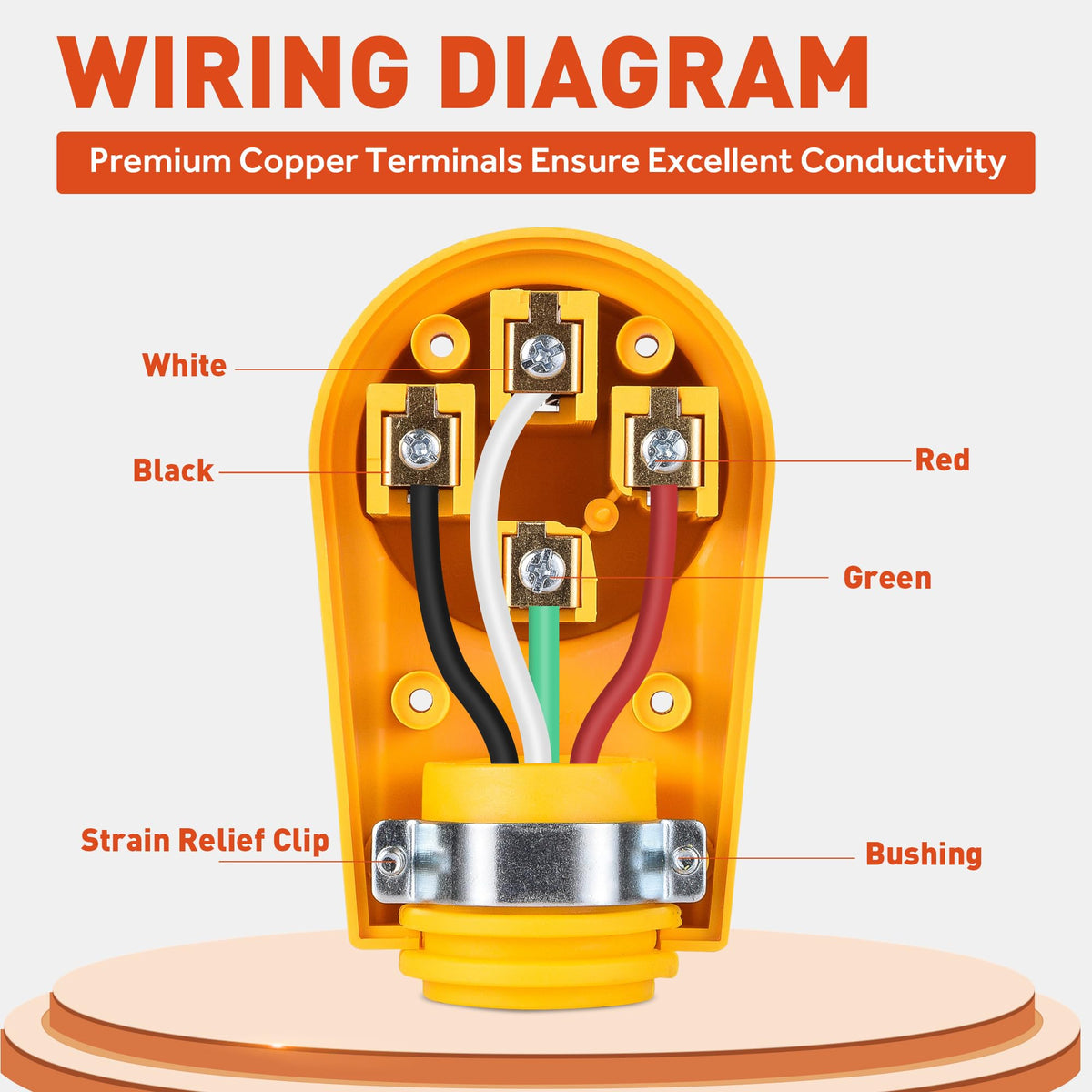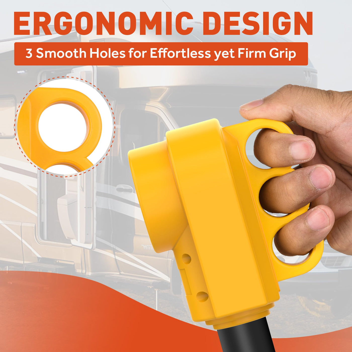Design of an inner strain relief clip and outer bushing, easily customized for the 6AWG/3C+8AWG/1C RV cord, able to shield from dust and debris to some extent, which also contributes to secure the cord for stable and good connection. Rated at 125/250V 50A, ergonomic handle on the back, it's easy to plug in and unplug, better energy saving. Perfect for your RV, Camper, Caravan, Motorhome, Trailer or other vehicles. Effort Saving, Easily Replace Old Receptacle Saves your money from replacing the entire supply cord and makes it easy to repair the issues with the molded plug. Easy to disassemble the old unit and re-do the connection, make sure to keep it out of puddles and rain. Be sure to read the instructions first! It will save you a lot of frustration. Package Included: 1*50A RV Female Receptacle 1*Instructions