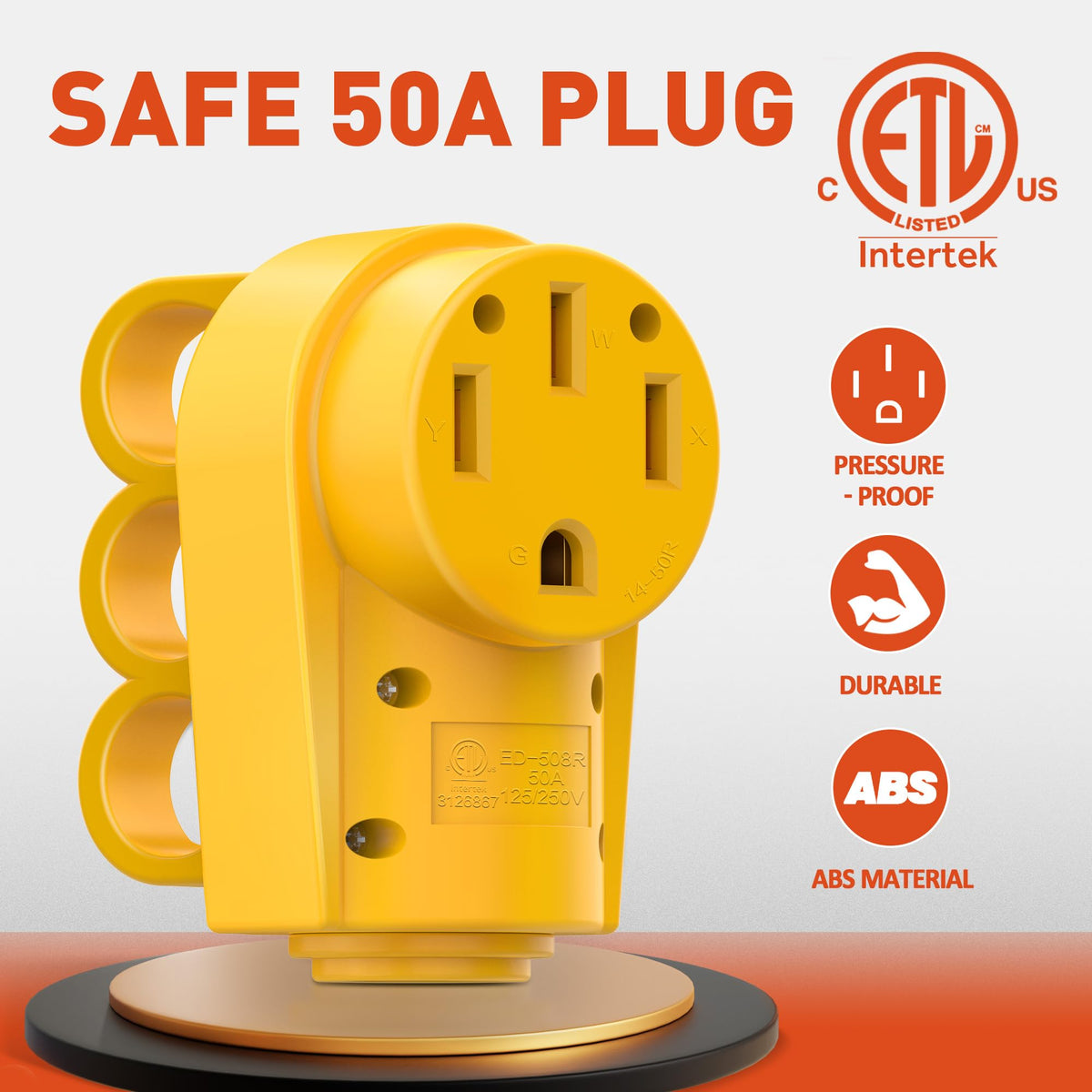 Snowy Fox RV 50 Amp Female Replacement Plug 14-50R Heavy Duty 125V/250V Receptacle Plug with Ergonomic Handle for RV, Camper, Ca