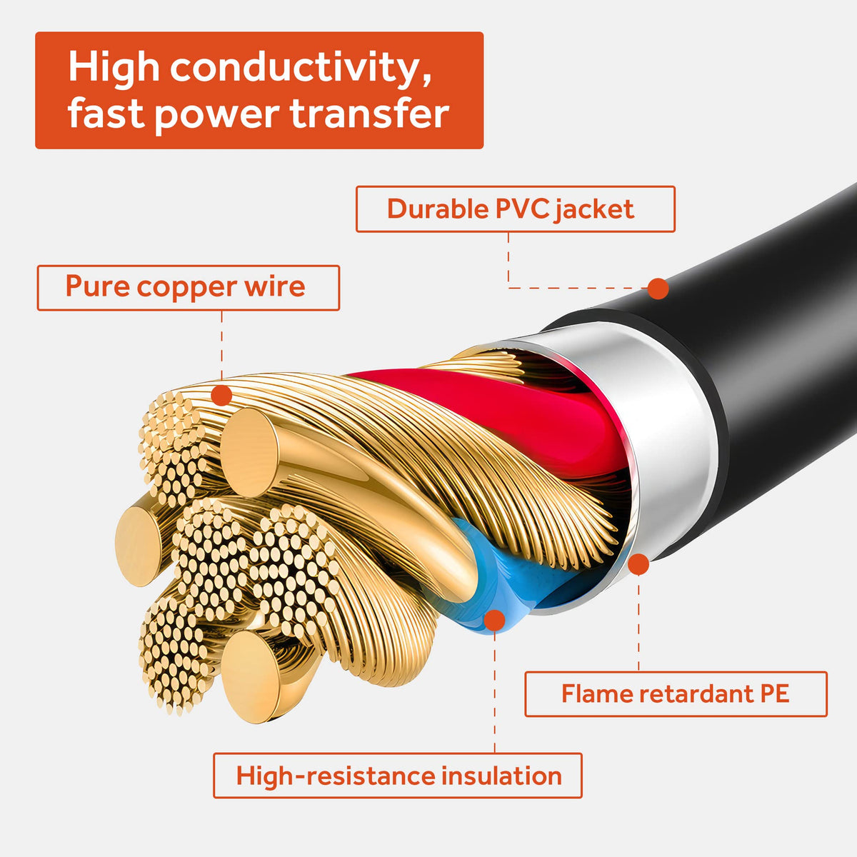 Q: What materials are used in the construction of the adapter cord?A: The SnowyFox adapter cord is made from durable flame-retardant and heat-resistant PVC material, ensuring it is sturdy and can withstand outdoor conditions. Additionally, it features 100% copper wiring for optimal conductivity.