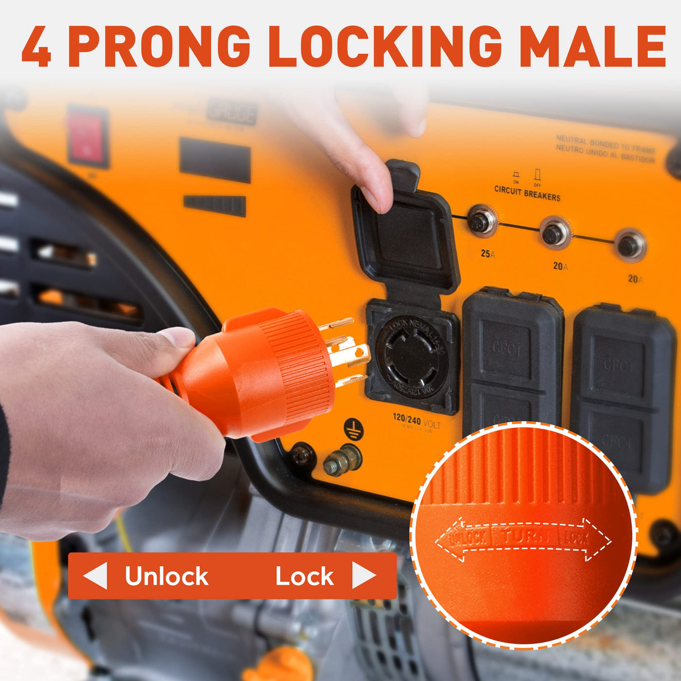 Snowyfox 30 Amp To 30 Amp Rv Generator Adapter Cord 4 Prong Nema L14-30P Locking Male Plug To Tt-30R Female Receptacle For Rv Tr