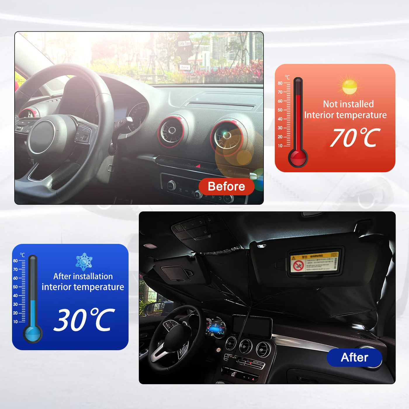 Sodcay 1 PC Car Windshield Sun Shade Umbrella, Foldable Sun Shade Car Sun Visor Protector Reflector Car Accessories Interior for UV Ray Block and Sun Heat Protection (31 x 55)