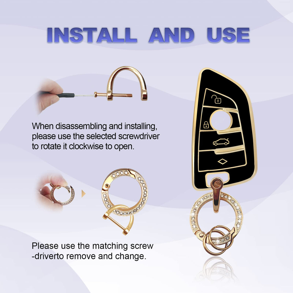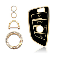 Soft TPU Key Fob Cover Case Shell Protector Car Key with Bling Keychain for Accessories Key Cover Compatible with BMW 2 5 6 7 Se