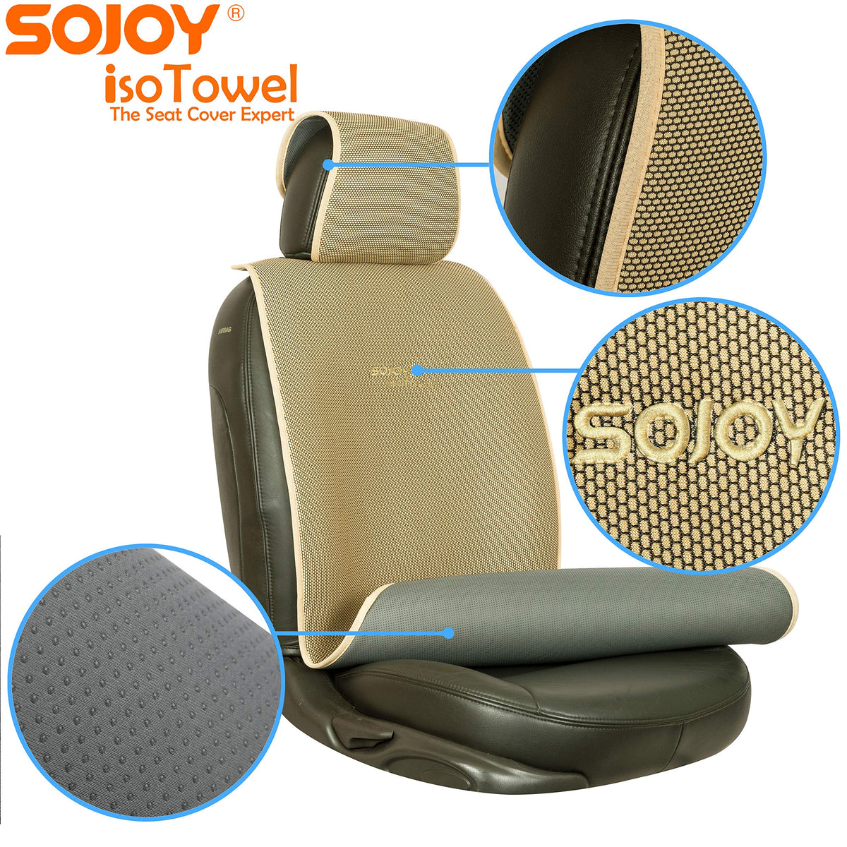 Details: Protect your car seat from sweat and dirt Cool your body down after a hot day out Breathable high quality gel guaranteed Machine-washable material Easy one-step installation Silicon non-slip design IsoTowel Sojoy Isothermal Car Seat Cover IsoTowel With Silicone Gel Enforced Looking for light, compact, car seat covers that will protect your car seat from sweat and keep you cool? One that isnt bulky, hot, or sticky and can be installed or put away in seconds? IsoTowel has been designed for your exact needs. Super breathable microfiber, form-fitting material, with silicon non-slip bottom. IsoTowel is designed for on-the-go, seat protection for your car!
