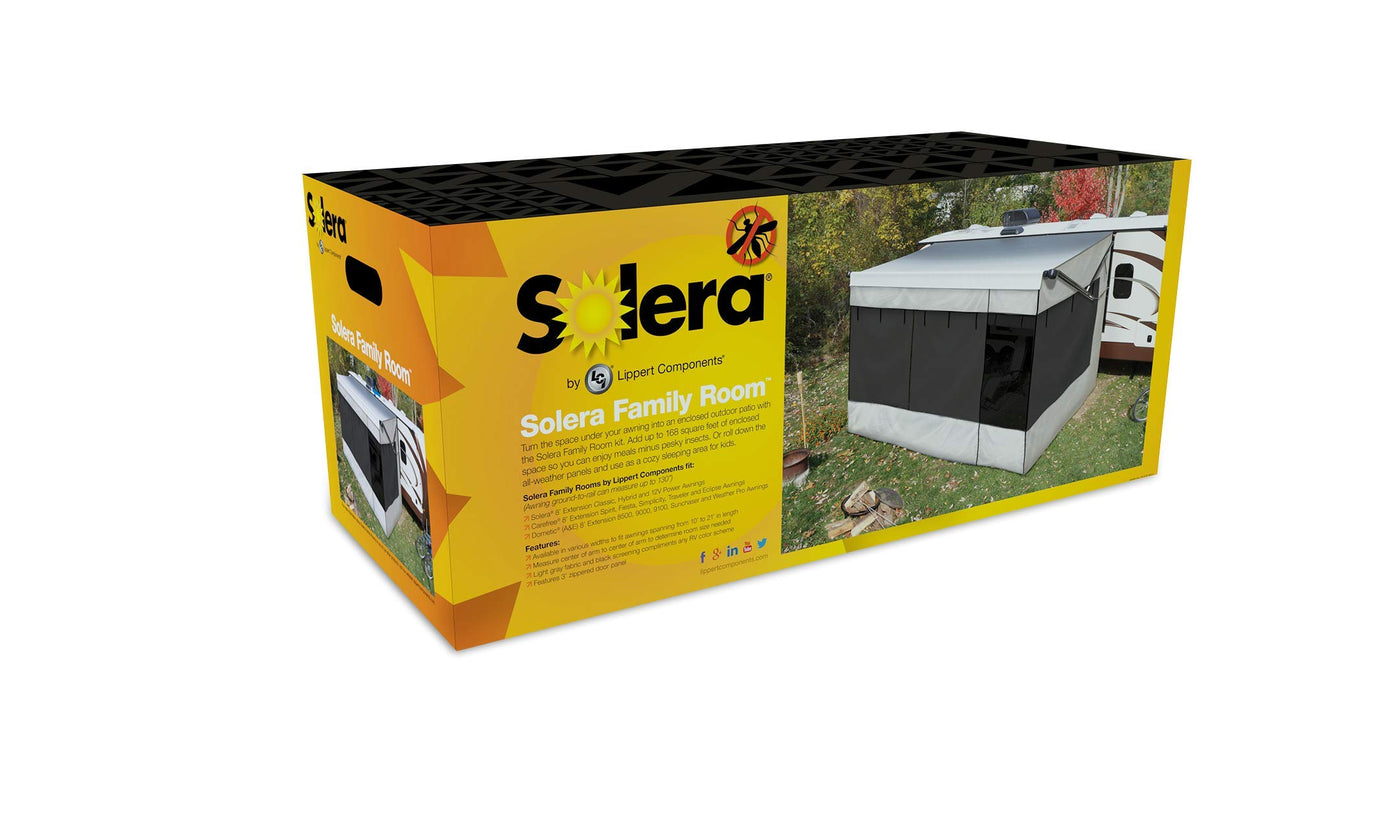 Q: Is the Solera Family Room compatible with other brands of awnings?A: Yes, the Solera Family Room is compatible with various brands including Solera, Dometic, and Carefree awnings, making it a versatile addition to your outdoor space.