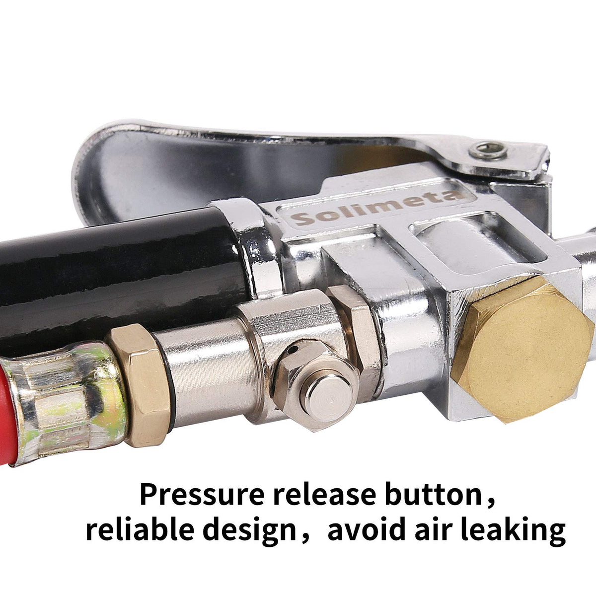 Solimeta Bayonet Style Inflator Gauge, Bayonet Inflator Gauge Kit, Straight-On Dual Foot Chuck, 20" Red Hos, Range 10-140Psi/Kpa