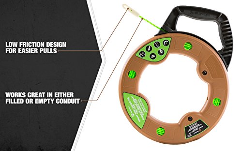Q: How does this fish tape compare to fiberglass options in terms of flexibility?A: This fish tape combines the strength of steel with greater flexibility than fiberglass fish tapes, allowing it to bend without breaking, making it easier to maneuver through tight spaces.