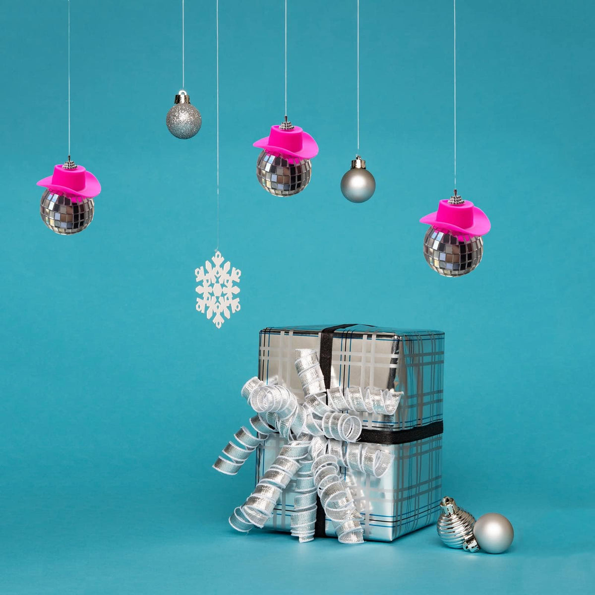 Spansee 2 Pcs Pink Disco Ball Cowboy Hat Car Accessory, Ball, Charm, Accessories For Women, Mini Car, Mirror Ornament