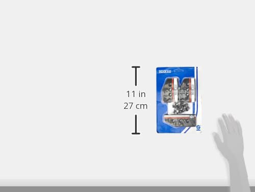 Q: What are the dimensions of the Sparco pedal set?A: The pedal set dimensions are approximately 28.2 cm in length, 17.8 cm in width, and 3.8 cm in height, making it suitable for most vehicles.