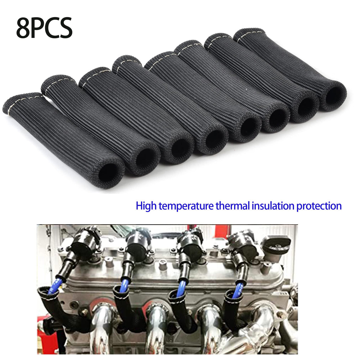 Spark Plug Wire Boots Thermal Protection Insulator Sleeve, 1200 Degree Heat Shield Cover Wrap 6 Inch For Car Truck 8Pcs(Black)