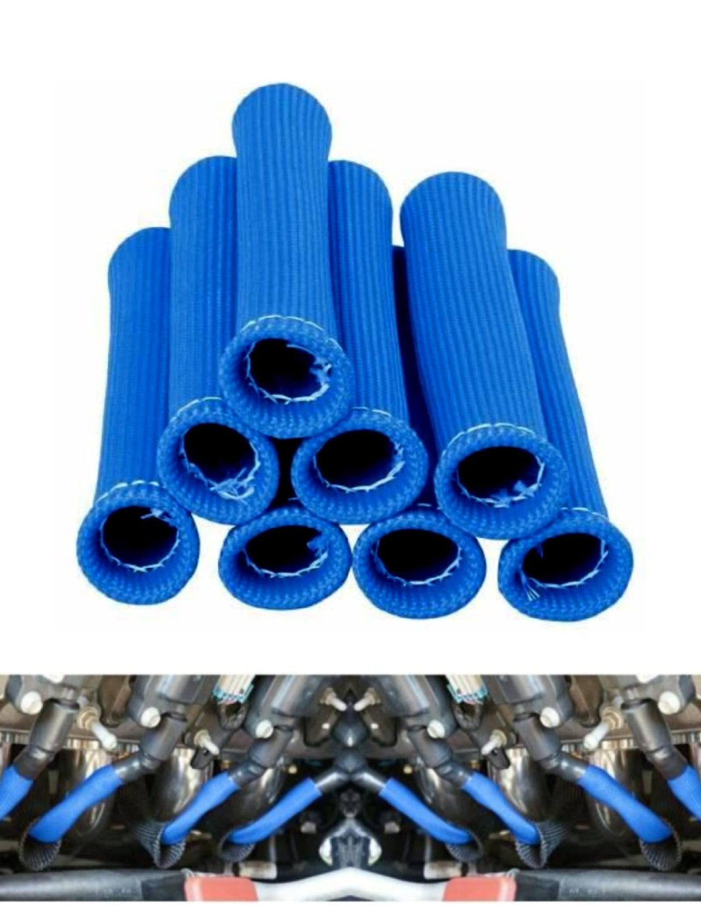 Q: What materials are used in the Spark Plug Wire Heat Sleeve?A: The Spark Plug Wire Heat Sleeve is made from durable fiberglass material, ensuring long-lasting protection for your spark plug wires, especially near exhaust headers.