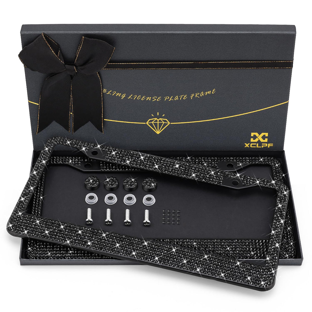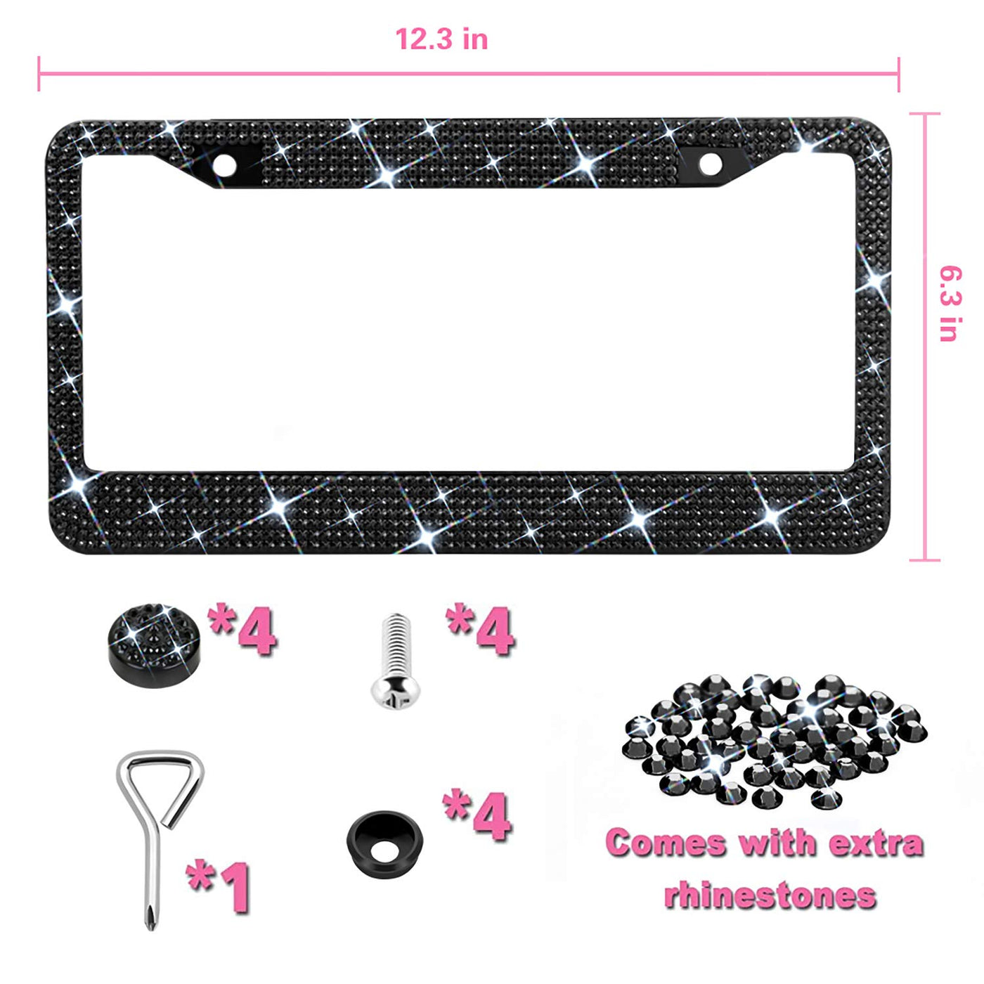 High Quality Glass Crystal ,Non Fading Colors ,Very Shinny Not Like The Others Cheap Plastic Stones .100% Pure Handwork To Glue It ,The Workers Made It One Stone By One Stone ,Not Like Others Make Cheap Sticker By Mould (This Sticker Is Cheap Costs But Easy To Be Dirty And Stones Can Be Moved /Fall Off Easy)We Are Proud To Sell This Good Handwork Products ,Money Back If You Are Not Satisfied With It . We Have Good Gifts Box Package , So It Is A Great Gift For Your Friends Or Family.This License Plate Frame Fits U.S.& Canada Standard Plate 6.3*12.6 Inches.Packing List:1X High-Grade Gift Box2X Bling License Plate Frame4X Washers4X Spacers4X Screws1X Pack Of Spare Small Diamonds1X Adjustment Tool