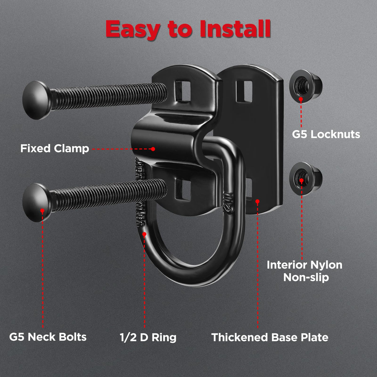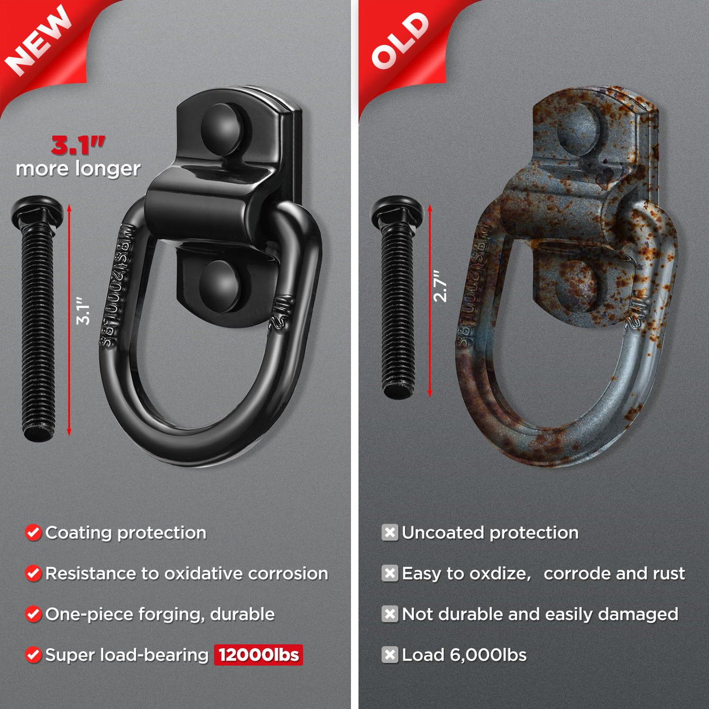Speedwow 4 Pack Heavy Duty Steel D Rings Tie Down Anchors With Screws,1/2'' Bolt-On Forged D Ring Tie Down For Trailers,12000Lbs
