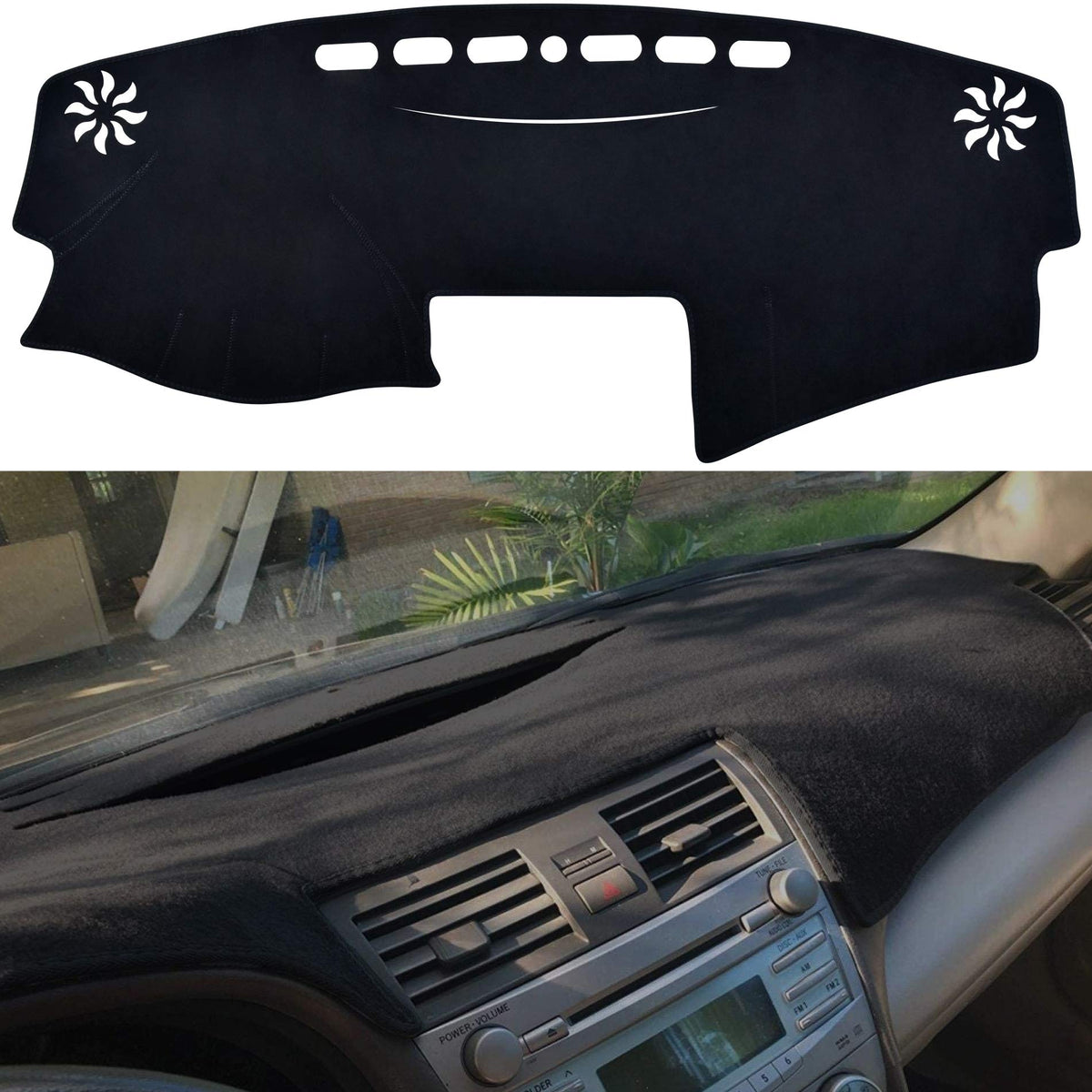 The Dash Board Cover Mat compatible with 2007 2008 2009 2010 2011 Toyota Camry. | This dash cover protects the dash surface from ultraviolet rays that can cause cracks and warping. It can cover blemishes and imperfections of old dashboards. The dash cover also helps reduce hazardous windshield glare, keep interiors cooler in the summer and warmer in the winter. | Dash covers are a great way to reduce windshield glare. The vehicles that experience windshield glare though should go towards darker colors like black or charcoal that will absorb light versus reflect light. | Face fabric is Solution Dyed Polyester with high UV inhibitors for consistent color and maximum color fastness over time in the sun. The Suede is a low knap for a flat, low glare finish and will have high-low shading effects typical of Suede material. | The vents and speakers-We know how important A/C is your truck. We won't block any of the vents and will have cutouts for them. With speakers any flat speakers we cover but also don't worry the material is specially designed not to obstruct sound. If you have any questions during use, please contact us at the first time, we will give you a satisfactory answer.