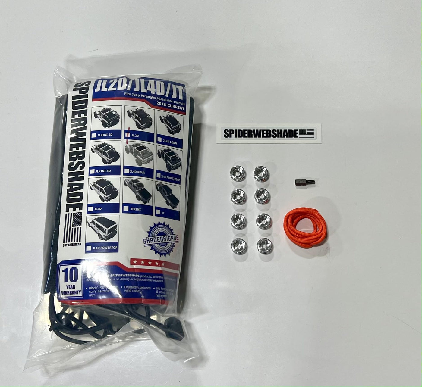 Enjoy the outdoors with our shade top products are a good solution for blocking the sun's uv rays from your head, face and neck while radically reducing wind noise at highway speeds. Finally, you can talk on the phone at 70mph with the top down! Easy to install spiderwebshade shade tops fit under any hard tops, soft tops, kini tops. Just remove your current top to install. The best part is that a our mesh tops never have to be removed once installed and it will never get in the way! Rugged construction and designed to last trailmesh is our most durable material yet and designed to meet the needs of the most aggressive offroad enthusiast. Unique woven mesh blocks the majority of the sun's uv rays keeping your passengers, pets, and cargo up to 27% cooler pet, and fade resistant heavy-duty shading fabric made of vinyl-coated polyester developed for high-end outdoor furniture Resist rips and tears from branches on the trail and flying debris on the road. Designed to be compatible with Jeep JL (2018 - current). Jl tops ship with additional accessories needed. Every trailmesh product we make comes with a limited 10 year warranty so you don't have to worry. Try a spiderwebshade on your rig today!