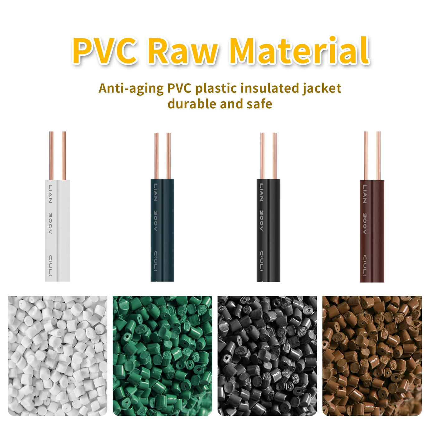Q: What materials are used in the construction of this electrical wire?A: The wire is made of copper strands coated with PVC VW-1 material, providing durability and safety features such as flame retardance and resistance to moisture, acid, and alkali.