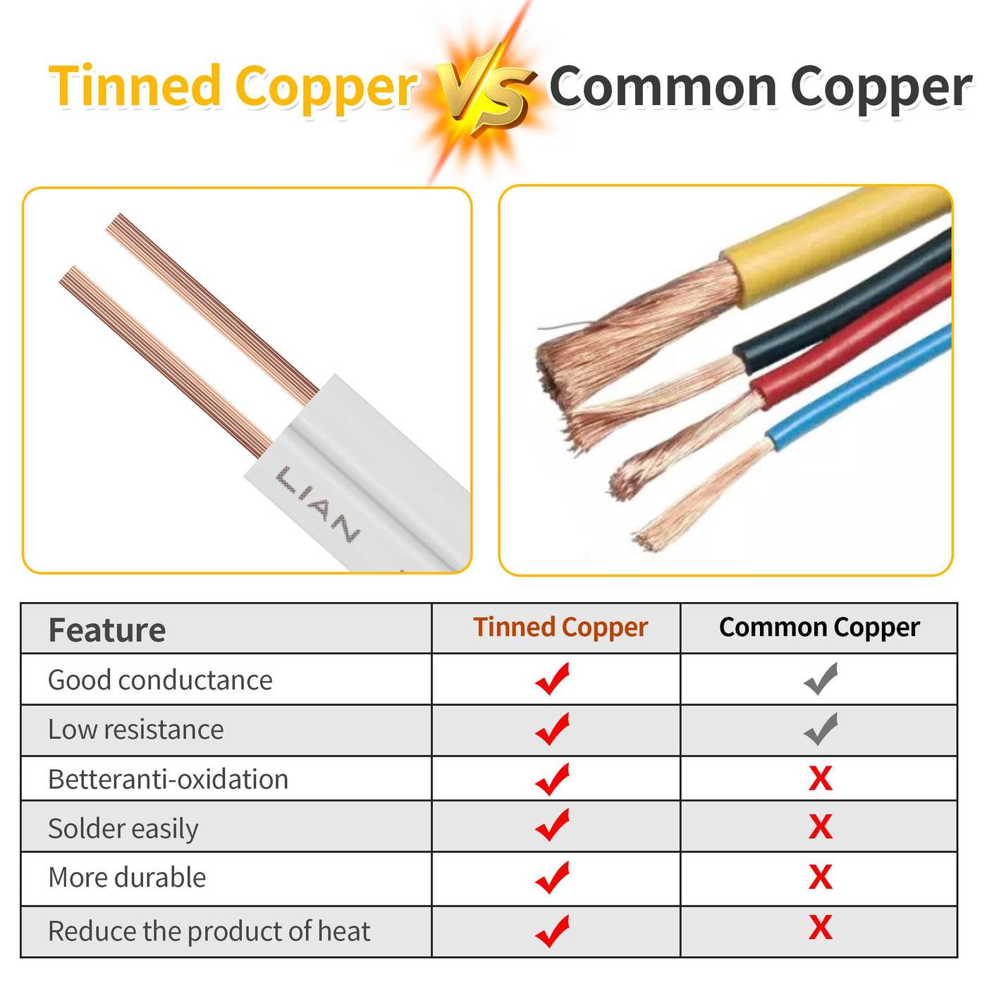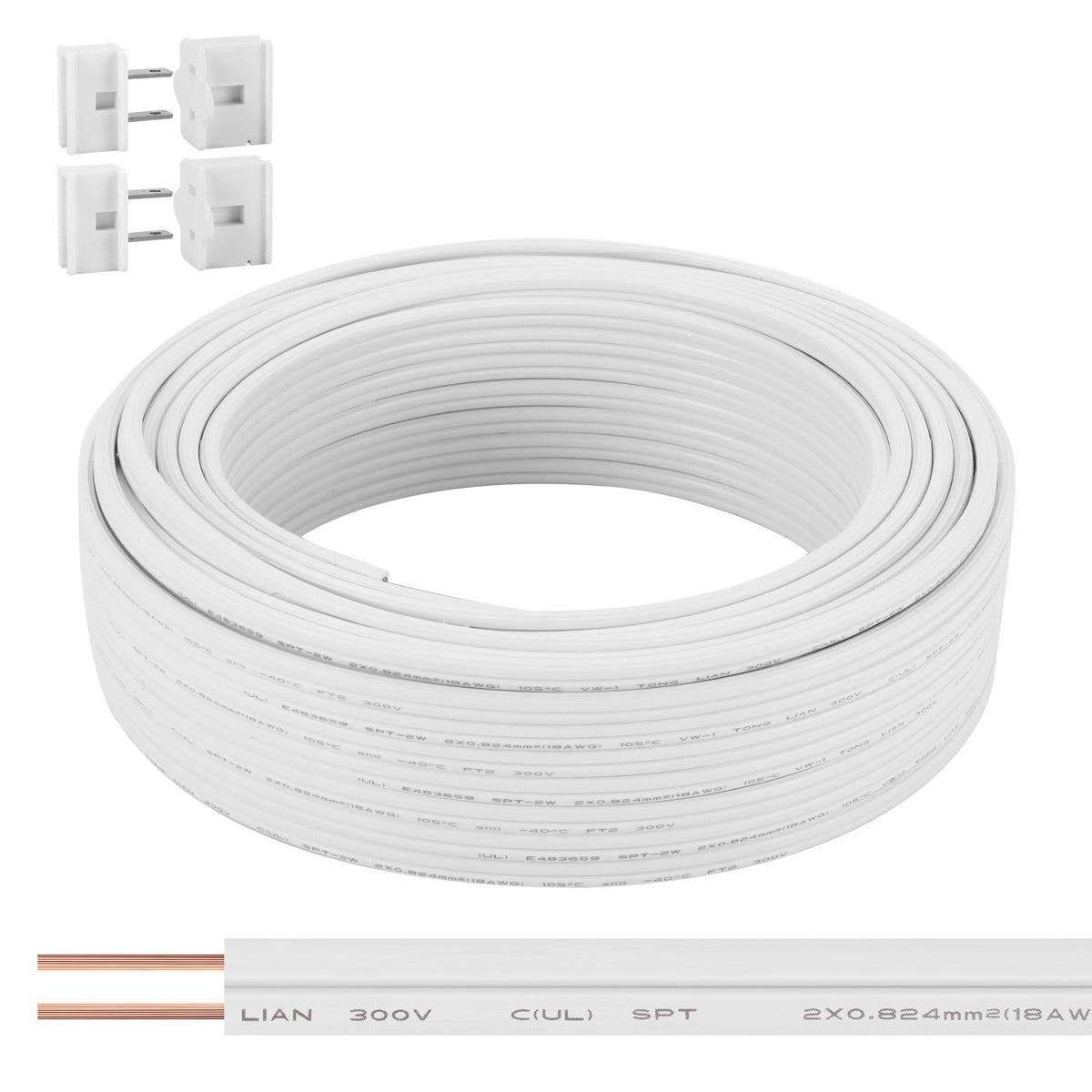 Specification: 18 Guage 2pin wire. Maximum working voltage: 300V. Low voltage applicable, great for uses with 120V or less. Temperature Range: -40°F to +276.8°F|High Quality & Safety: Made of copper strands with PVC VW-1 material coating, 41 tiny lines twined together, insulation thickness: 1.4mm, overall diameter: 3.4*6.8mm. The wire is flame retardant, anti-aging, acid and alkali resistant, and moisture resistant|Convenient: This hook up wire can be directly used, also can be stripped and connected to the equipment needed|Easy to Use: The 18/2 electric wire is lightweight, thin, soft can be bent arbitrarily, and is easy to strip, weld, crimp terminals, connect, cut, and wrap around necessary components enough to fit into tight spaces|Wide Application: Suitable for indoor household appliances & low voltage outdoor uses. Such as garden lights, accent lights, path lights, spotlights, garden accessories, outdoor speaker, solar panel and so on|Note: Insulation thickness differs from SPT-1 wire (0.76mm) and SPT-2 wire (1.4mm).
