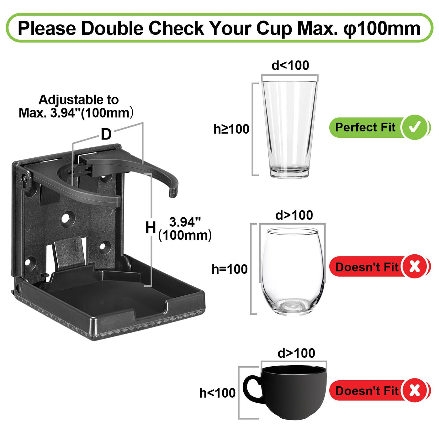 Adjustable Cup Holder (2Pcs) Black Cup Holder For Cars, Trucks, Rvs, Vans, Boats And More Folding Drink Holder To Hold Variety Size Mugs, Large Drinks, Bottles And Can Features - Spurtar Adjustable Drink Holder Helps Prevent Spills And Mounts Quickly And Easily In Rvs, Cars, Vans, Trucks As Well As Boats - Adjustable Retainer Arms Allow Holding A Variety Of Cans, Cups, Bottles, Glasses From 60Mm To 100Mm Diameter - Folding Drink Holder Is Made Of Uv-Stabilized Abs, Corrosion-Resistant Material Ideal For Onboard Storage In Marine Environments, Cars, Trucks, Caravans, And Many More. - Drink Holder For Car Mounts Easily To Any Vertical Surface, And Simply Folds-Up Near-Flat When Not In Use - Spurtar Automotive Cup Holders Are Also Ideal Cup Holder For Boat, Cup Holder For Truck, Rvs, Vans, Campers Product Details Material: Premium Abs Colour: Black Weight: 220 Grams / 0.48 Pounds Dimensions Closed: 100 100 X 23 Mm (L*W*H) Dimensions Open: 100 100 X 95 Mm (L*W*H) Maximum Arm Opening: Dia. 100Mm / 3.94 Inch You Will Get 2 Folding Drink Holder 10Pcs M3 X 18Mm Eastyard Support If You Need Any Assistance Please Send Us A Private Message. We Are 24/7 At Your Service.