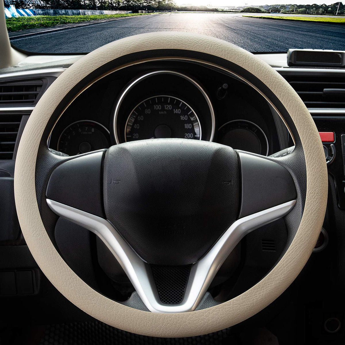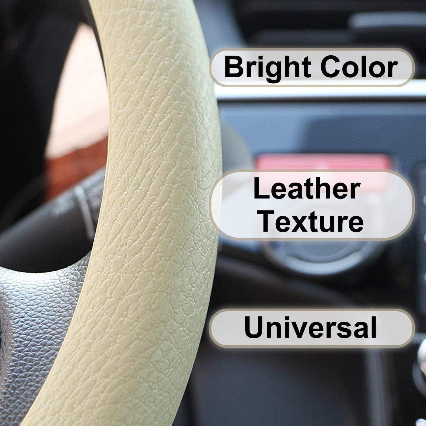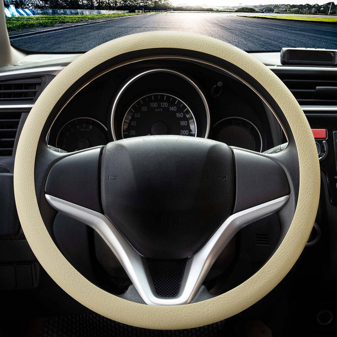 Spurtar Beige Car Steering Wheel Cover Men, Silicone Leather Texture Car Accessories for Women Soft Thin Anti Slip Vehicle Accessories, Fits 13'-17' Diameter
