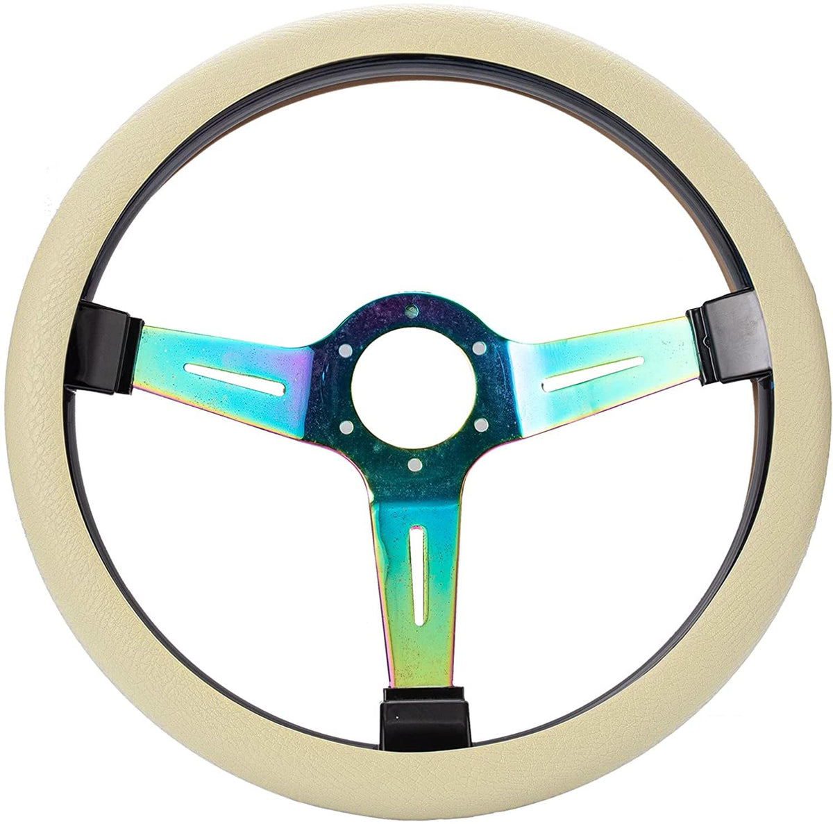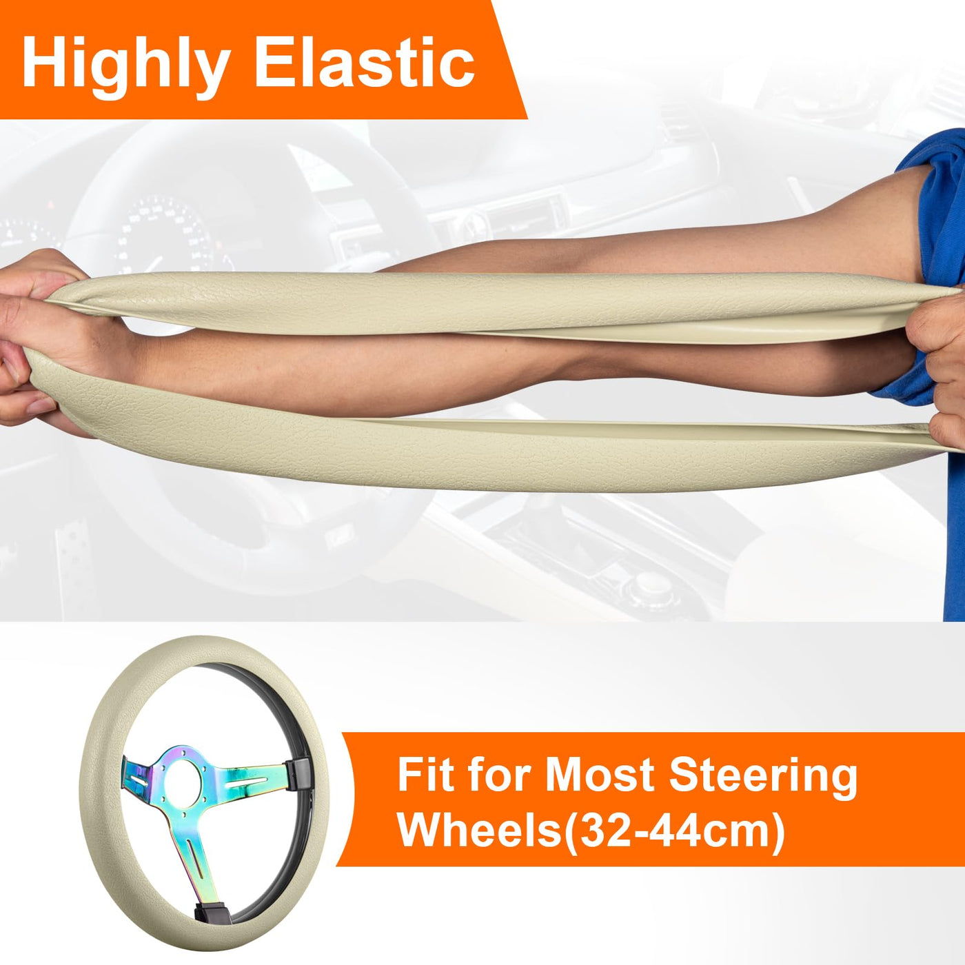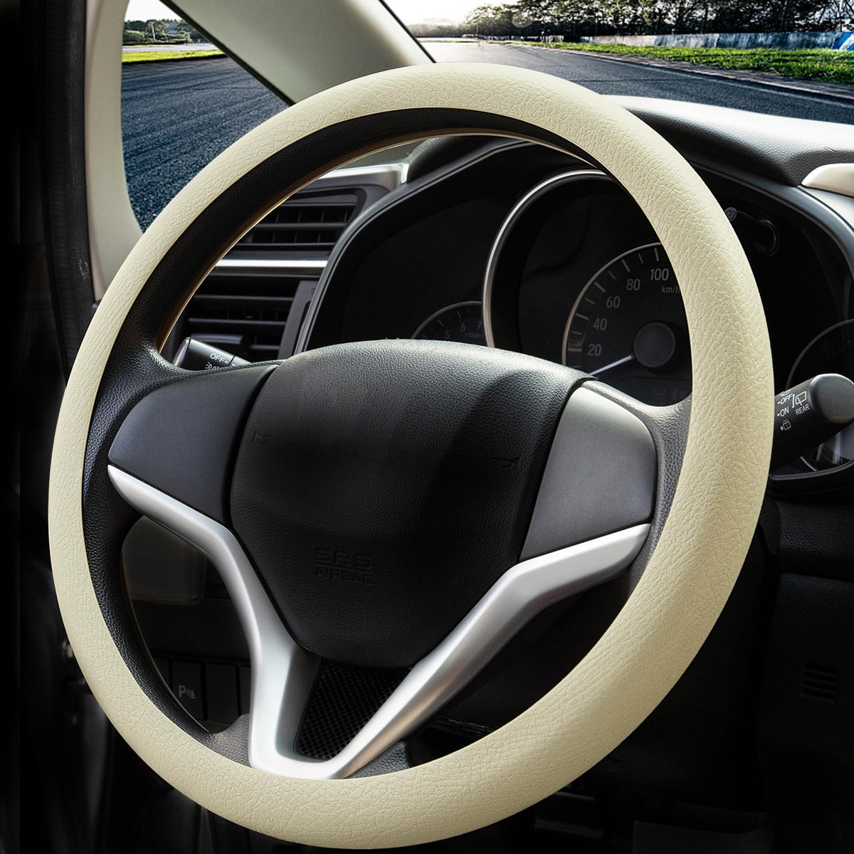 Spurtar Beige Car Steering Wheel Cover Men, Silicone Leather Texture Car Accessories for Women Soft Thin Anti Slip Vehicle Accessories, Fits 13'-17' Diameter