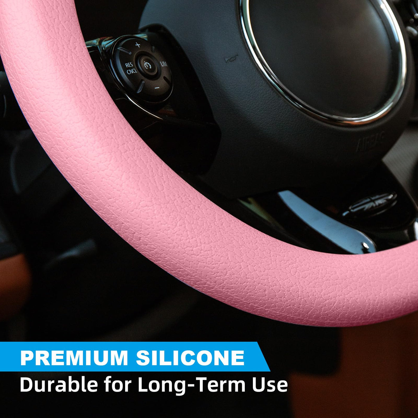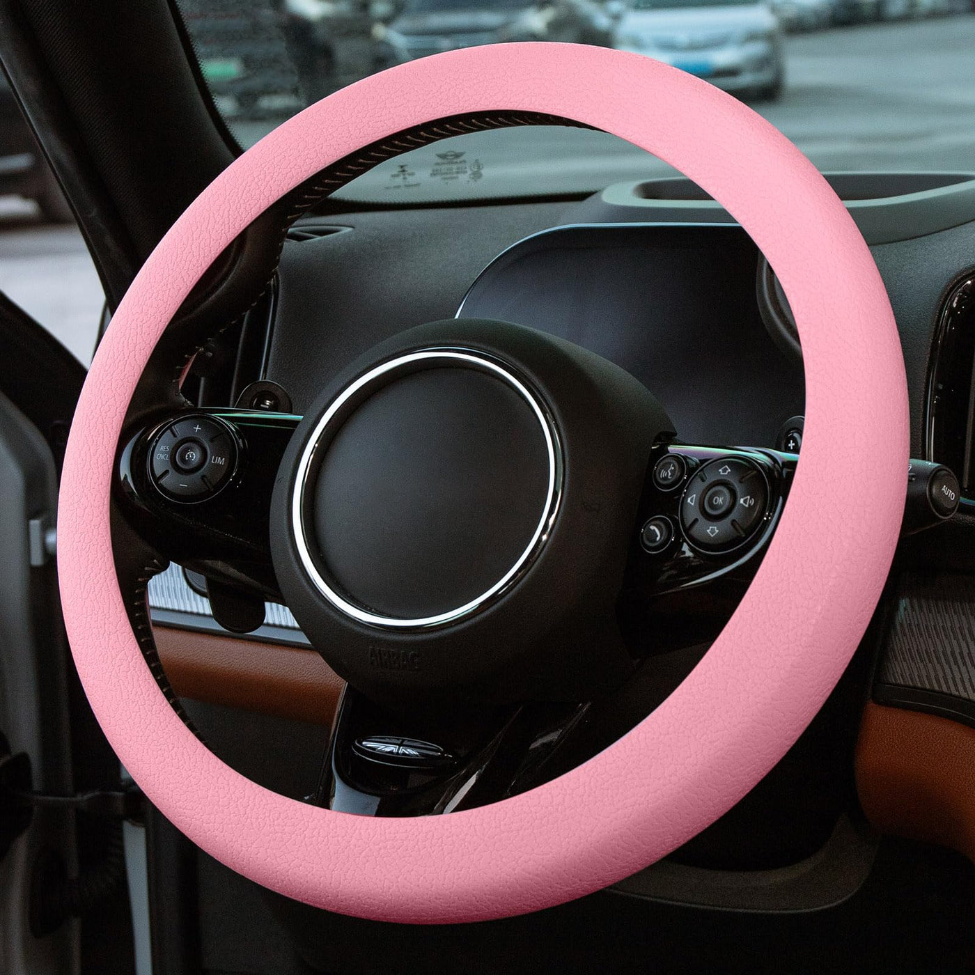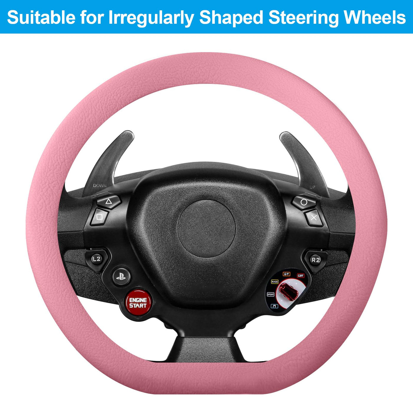 Q: What material is the steering wheel cover made of?A: The Spurtar steering wheel cover is made from high-quality silicone, providing a soft and comfortable grip while ensuring durability and a stylish appearance for your vehicle's interior.