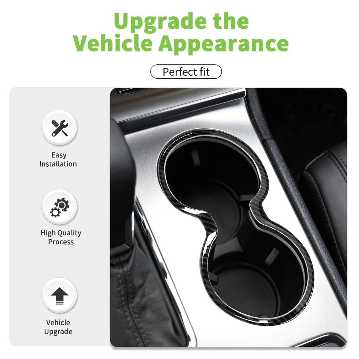 Sqqp Carbon Fiber Center Console Cup Holder Cover Interior Accessories Compatible With 2011-2021 Jeep Grand Cherokee